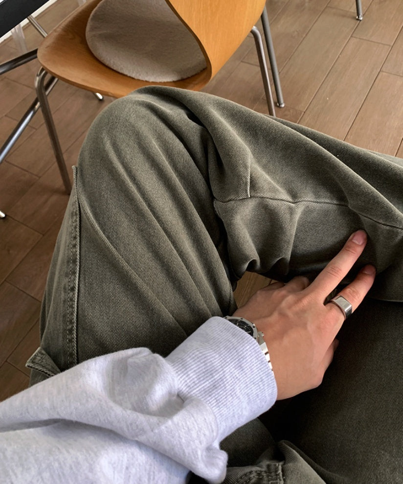 Cargo Jeans Washed-out Vintage Large Pocket Straight-leg Pants