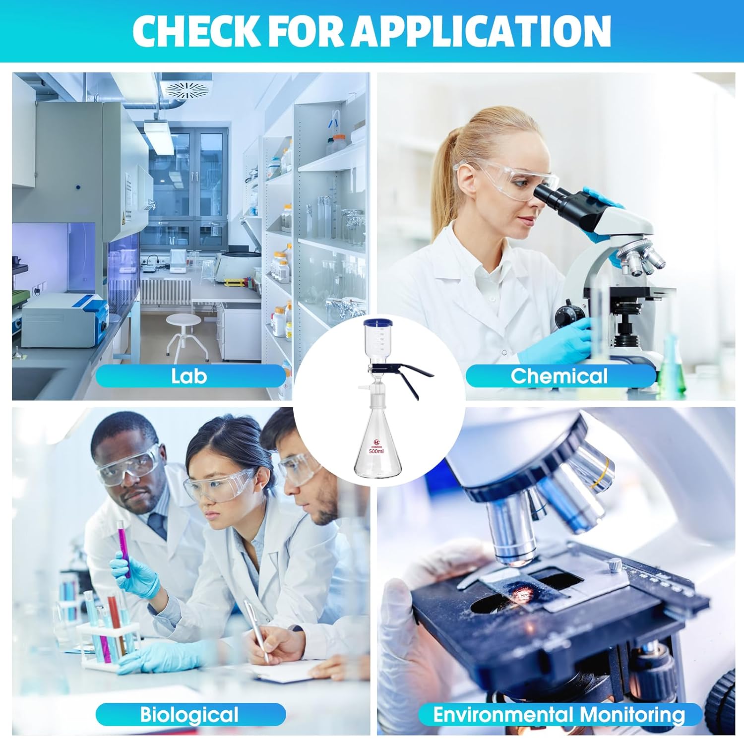 ✔ 500mL glass filtering flask – Handles high-volume solutions.