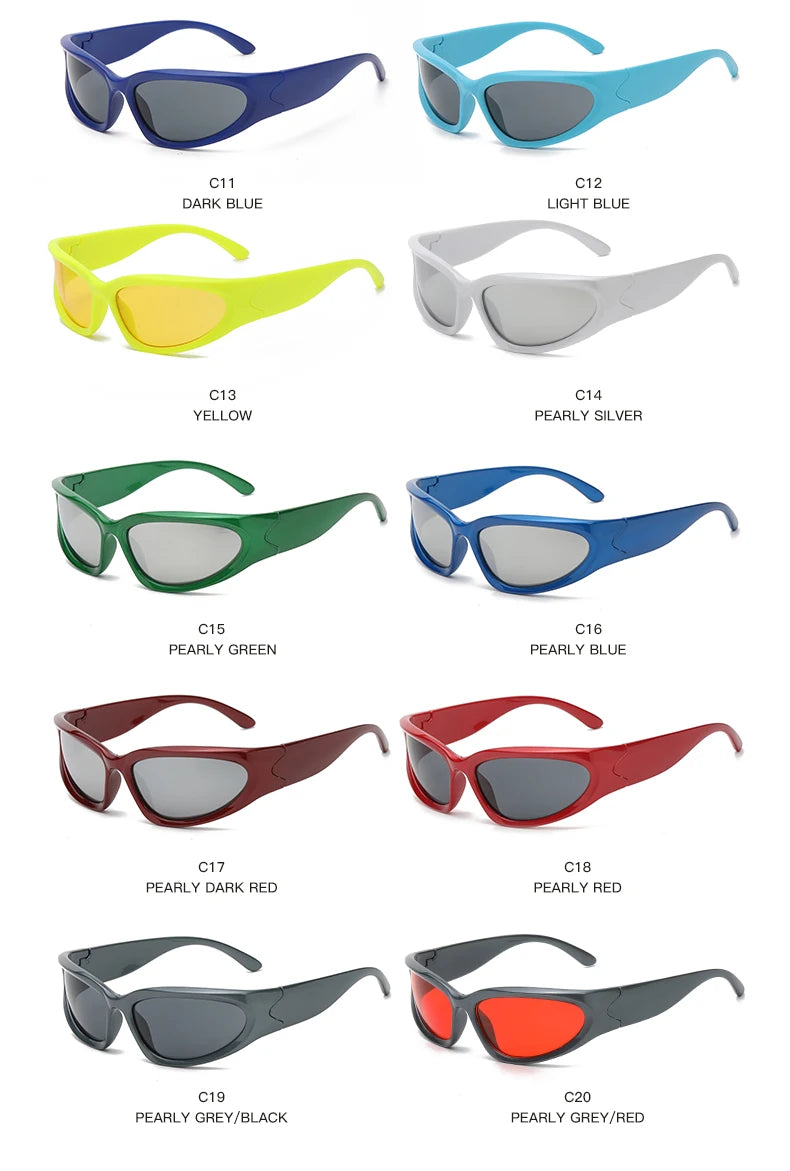 These ain’t your grandma’s sunglasses—unless she was a Y2K cyber queen ruling the streets in platform boots and a metallic jumpsuit. The CYBERSTORM 2000 Wraparound Shades are built for speed, chaos, and turning sidewalks into runways. Crafted from high-impact polycarbonate with UV400 lenses, they bend reality, distort the haters, and keep your eyes locked on the prize—whether that's a neon-lit cityscape or a VIP-only afterparty. You don’t wear these; you command them.