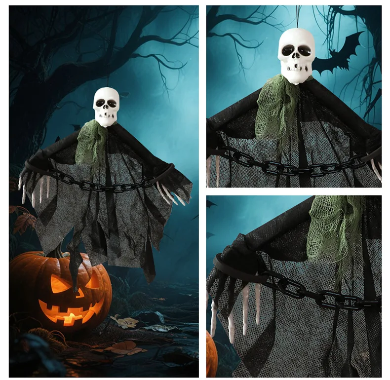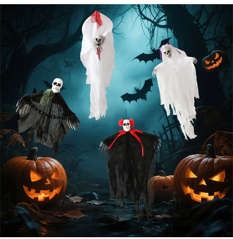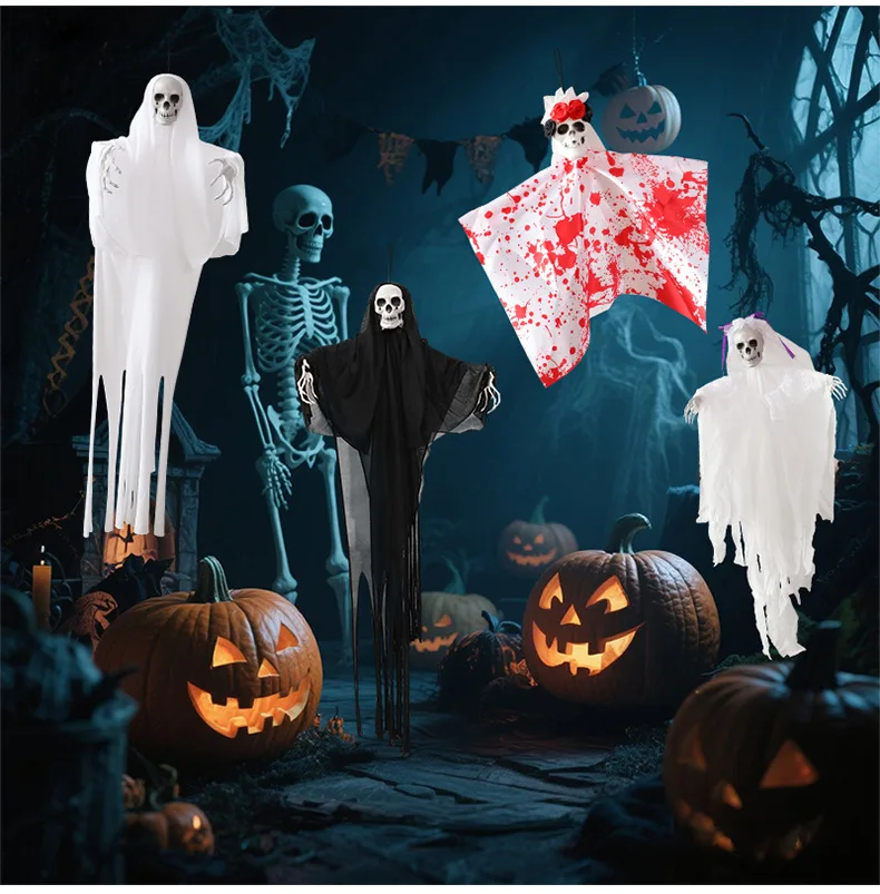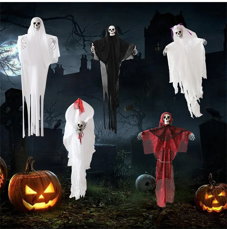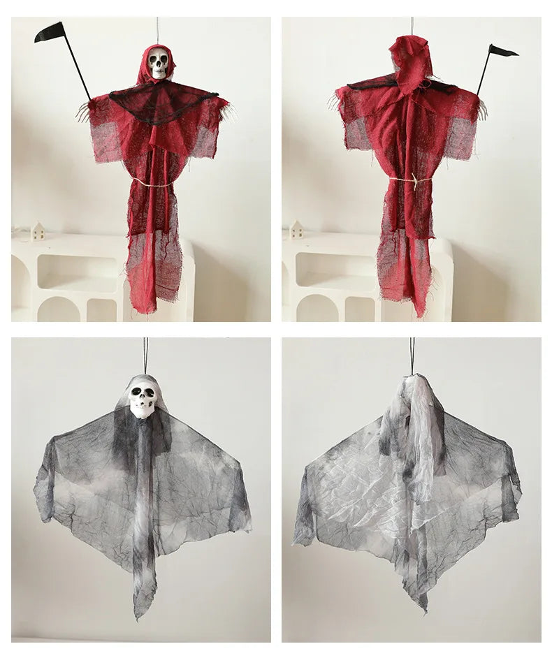 Halloween Gauze Skull Decor - Horror Grim Reaper, Headless Ghost & Red-Haired Ghost Ornaments for Haunted House Decoration
