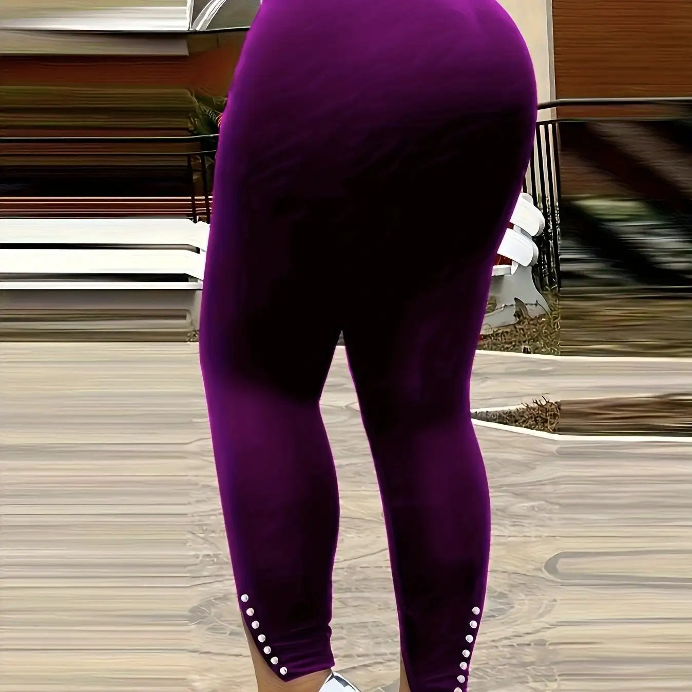 Ladies' Solid Color Fashionable High Waist Sexy Slim Fit With Eyelets Versatile Pants
