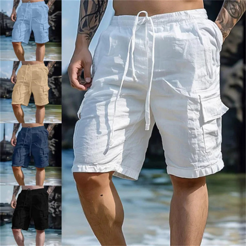 Cargo Shorts – Men’s Rugged Cotton-Linen Workwear with Drawstrings & Tactical Pockets
