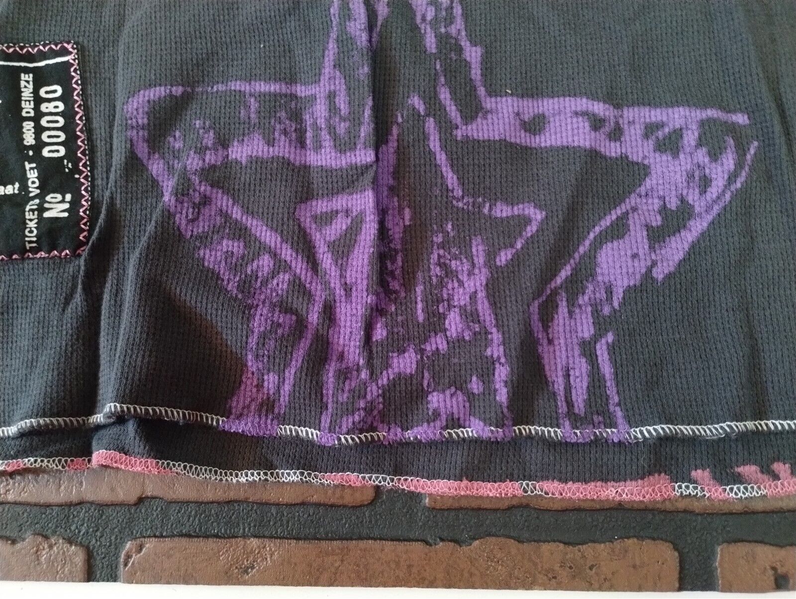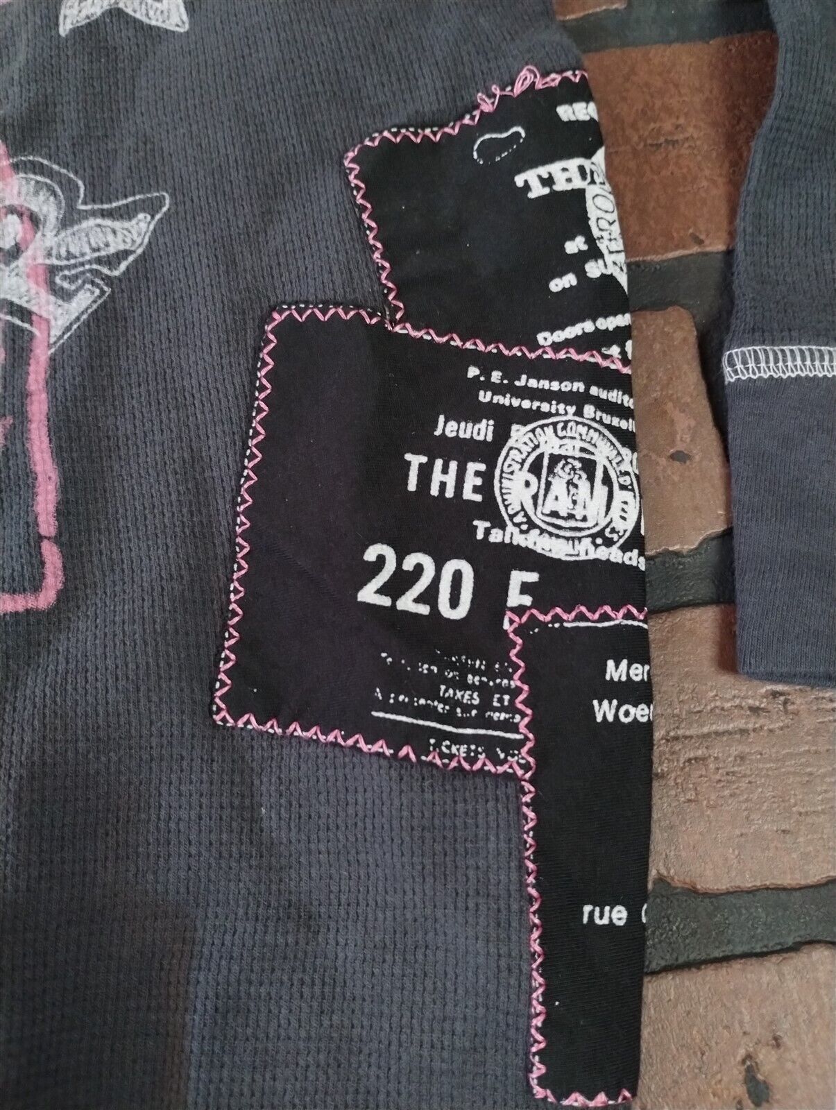 Features The Ramones' classic Presidential seal logo featured in a hand-drawn "On Tour" graphic on the front and back of this grey, 100% cotton long sleeve thermal. This thermal includes replica European ticket stubs sewn to the side.