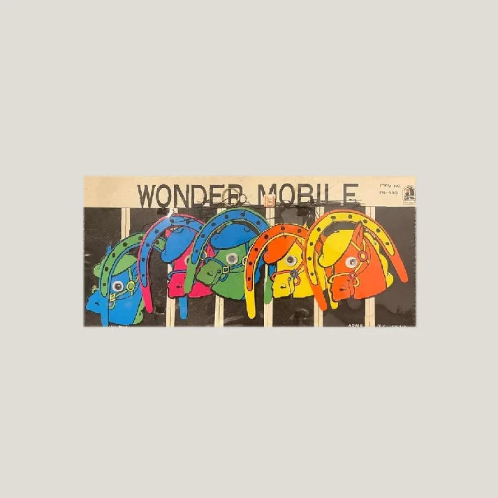 Step into a world of wonder and nostalgia with this extraordinary Very Rare Vintage Blacklight Wonder Mobile featuring Horses and Horseshoes from the 1950s! This captivating piece of history is not just a collectible; it's a portal to a bygone era of innovation and artistic brilliance. Measuring an impressive 12" x 5 1/2", this rare 1950s vintage treasure is a must-have for any serious collector or enthusiast of mid-century Americana.