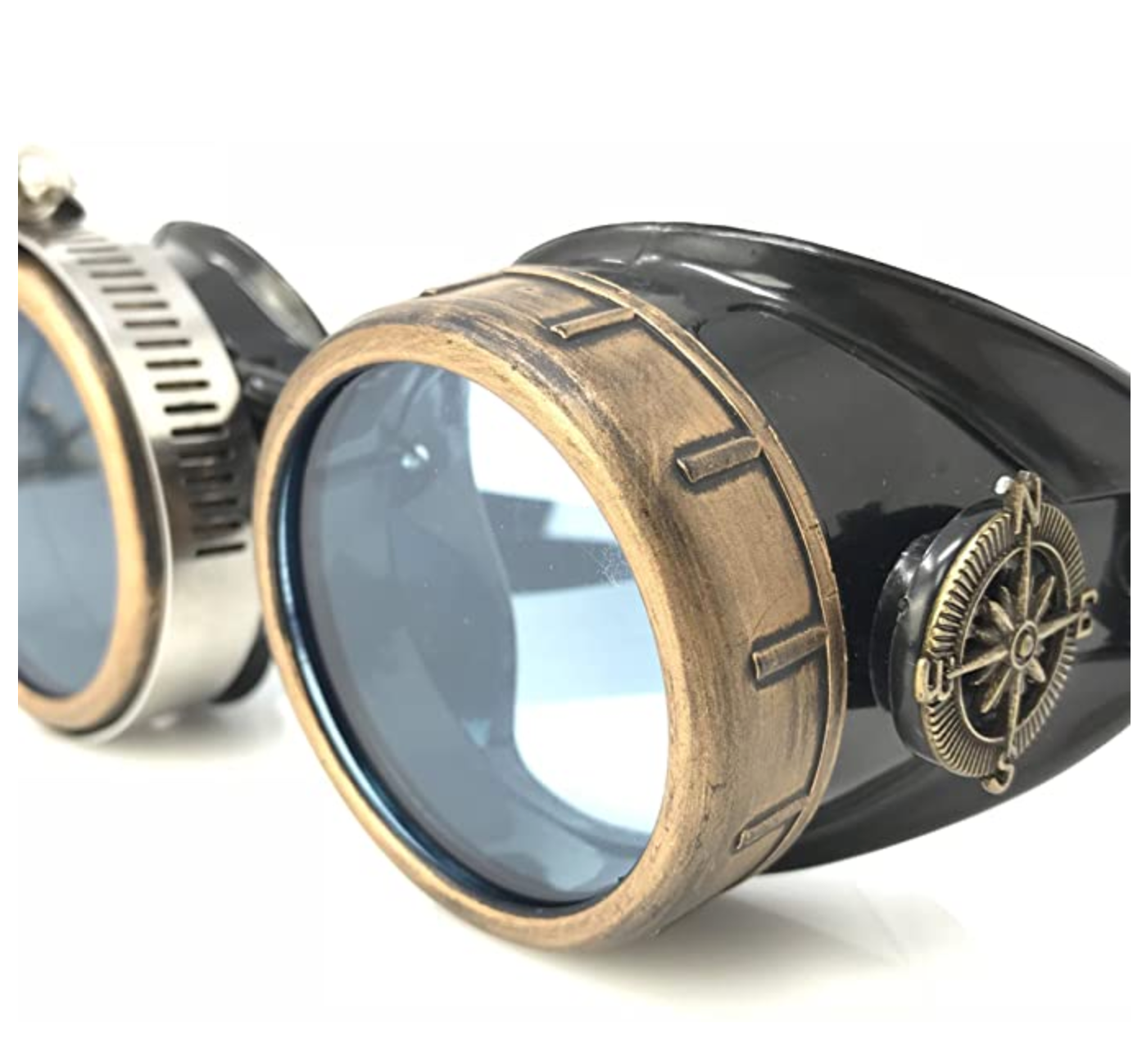 Get ready to elevate your steampunk style with our Steampunk Goggles! These goggles feature UV glow neon blue spiral diffraction lenses, perfect for adding a touch of futuristic flair to your outfit. Plus, the magnifying loupes will help you see the world in a whole new way. Get ready to turn heads with these one-of-a-kind goggles!