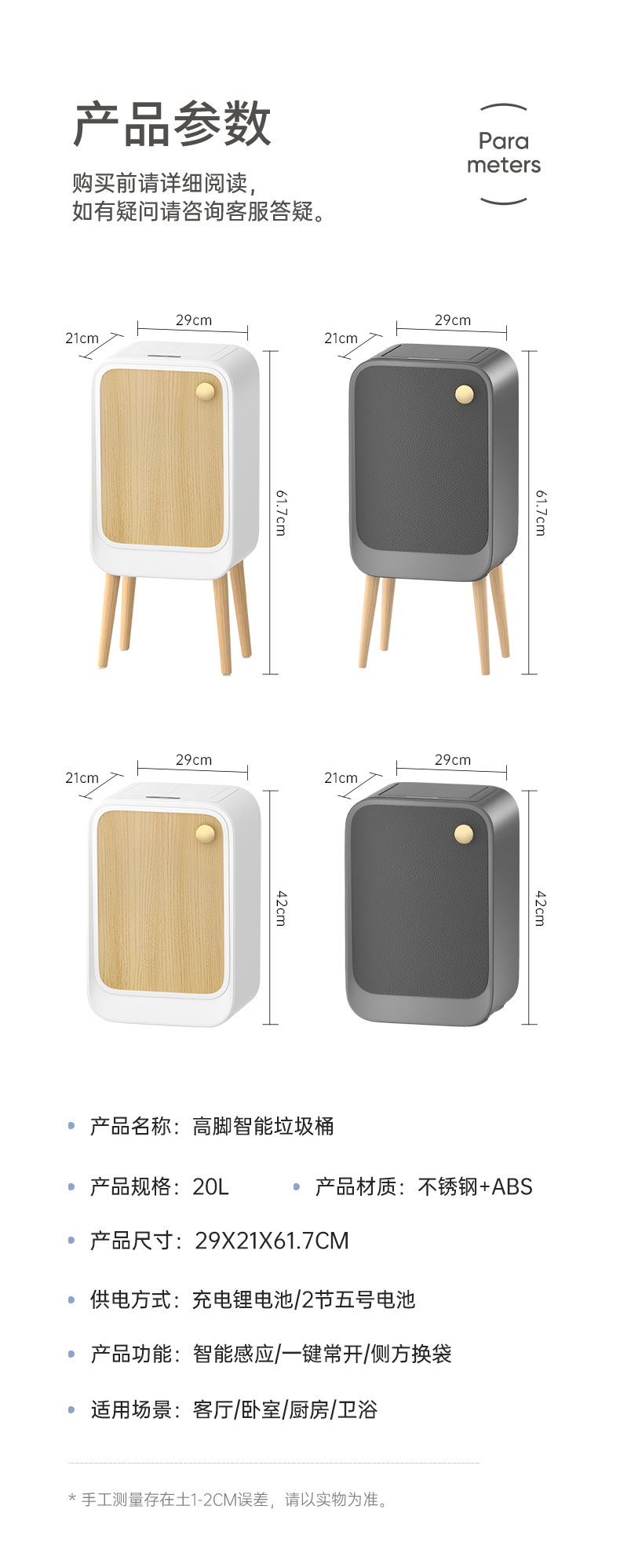 Trash Can Dispenser for Kitchen Bedroom Living Room Office With High Leg Wastebasket Automatic Sensor Smart Dustbin 20L