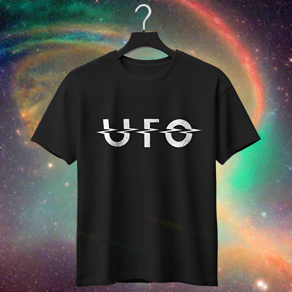 Before Area 51 was a meme and long before TikTok knew what a riff was, UFO was shredding stages and abducting minds. Whether you're a fan of the legendary UFO band or just vibing with the idea of aliens starting a tour, this tee's got interstellar attitude baked into every thread.
