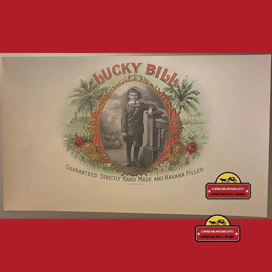 Antique Vintage Lucky Bill Embossed Cigar Label Victorian Boy 1900s