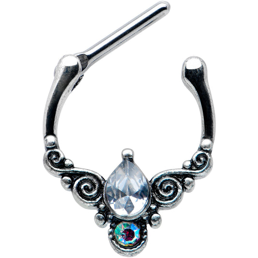 16G 5/16 Clear Aurora Gem Scrolling Drop Cartilage Clicker