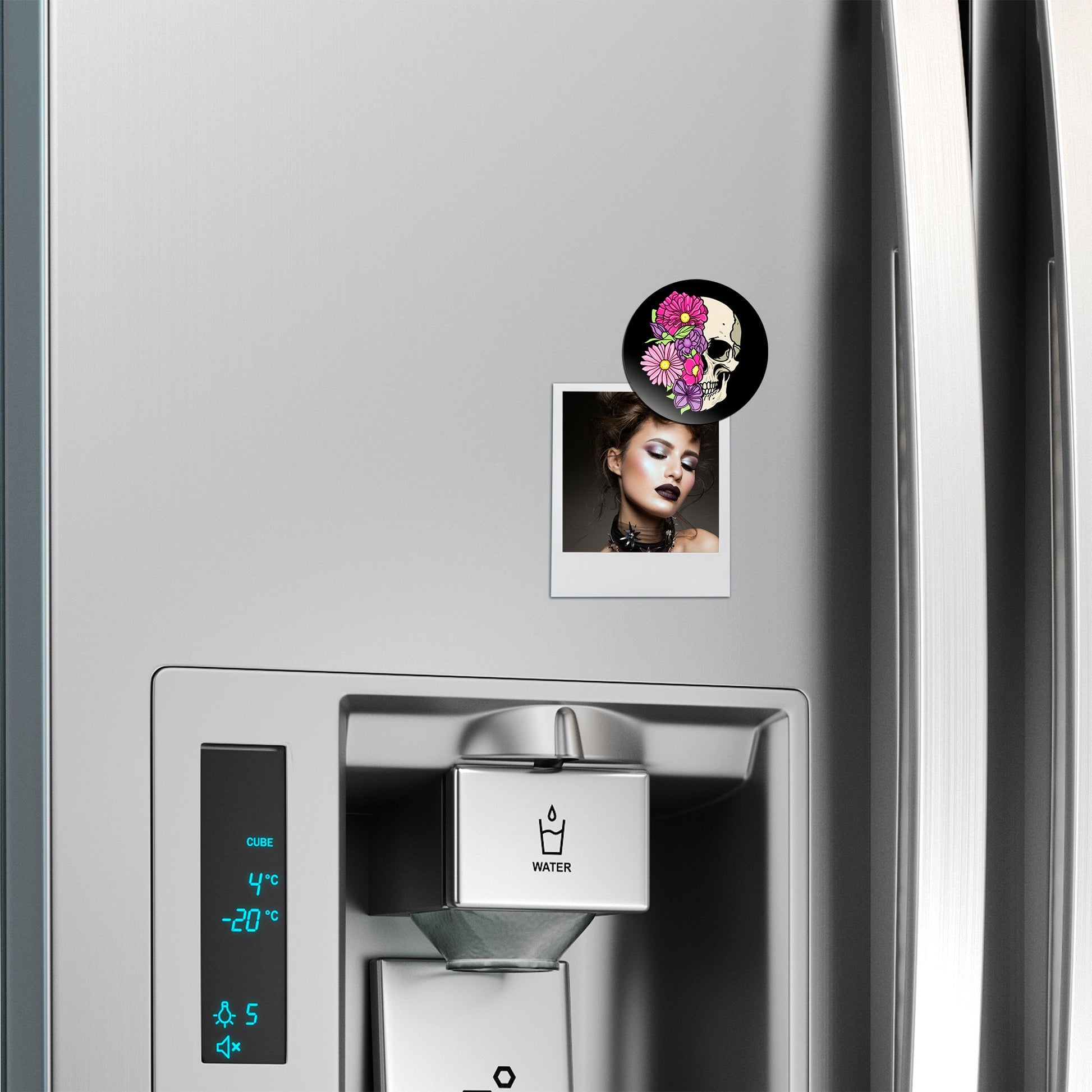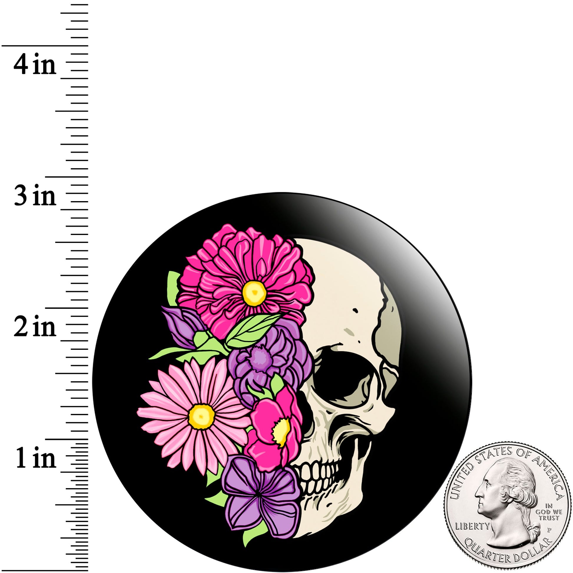 Catch every eye with this magnetic masterpiece featuring an artist-drawn skull surrounded by a vivid explosion of colorful flowers. The perfect balance of edgy and artistic, this circle-shaped magnet adds attitude and charm to any magnetic surface.