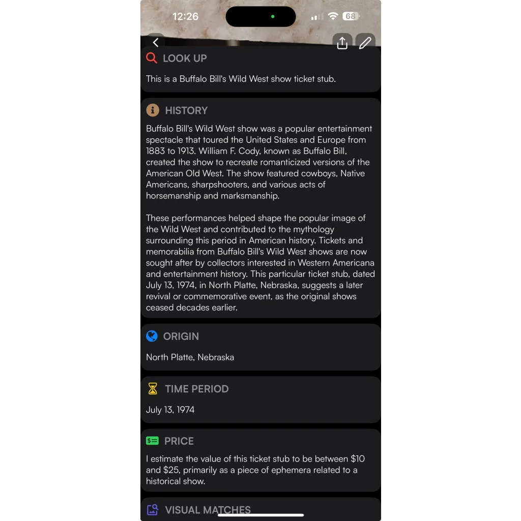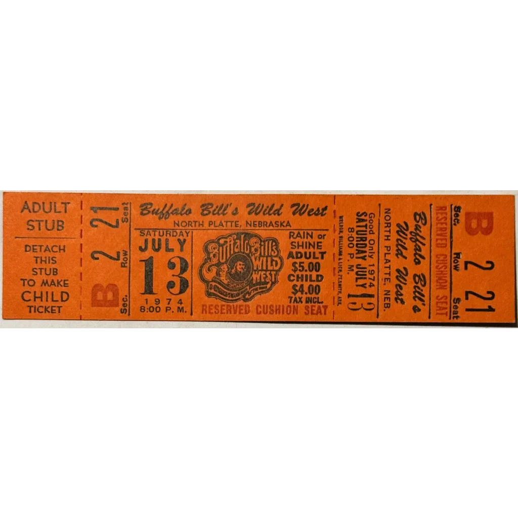 Step right up, folks! Feast your eyes on this incredible piece of Wild West history - a genuine 1974 Buffalo Bill's Wild West Show ticket from North Platte, Nebraska! This ain't just any old ticket, it's a portal to the past, commemorating the legendary showman's roots in his very own hometown. Imagine the excitement as crowds gathered at Scout's Rest Ranch, Buffalo Bill's former stomping grounds, now preserved as a historical site for future generations to marvel at!