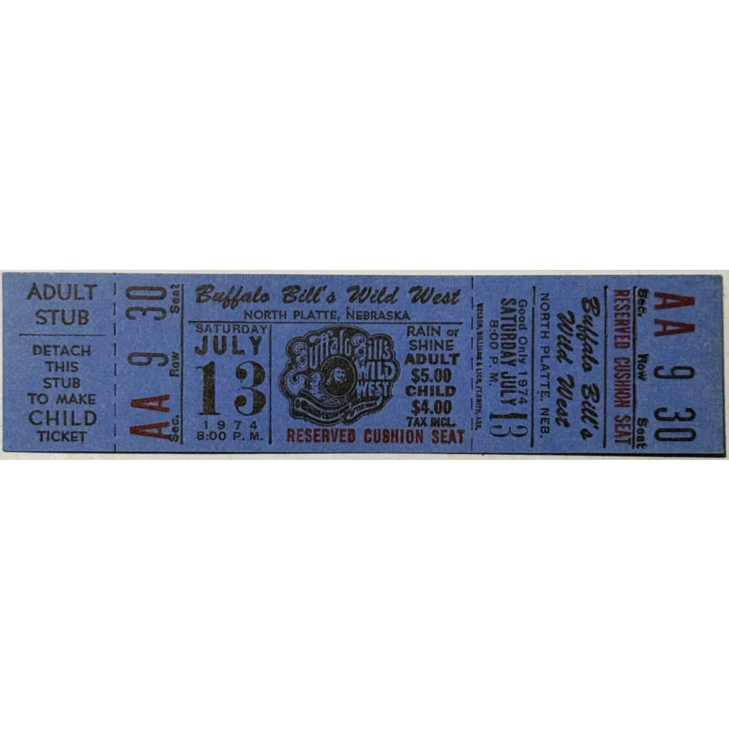 Rare 1974 Buffalo Bill's Wild West Show Ticket from North Platte