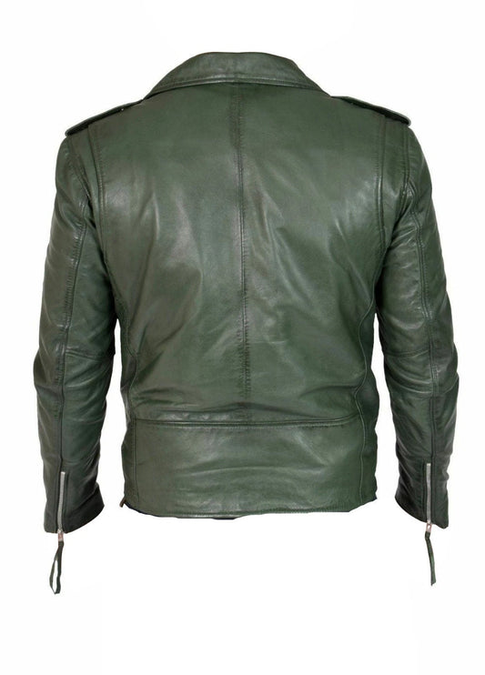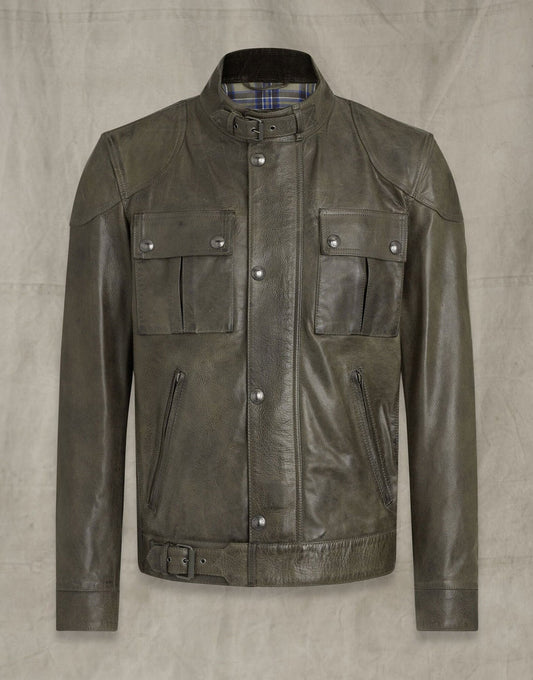 Handmade Sergeant Army Green Biker Style Leather Jacket With Belt