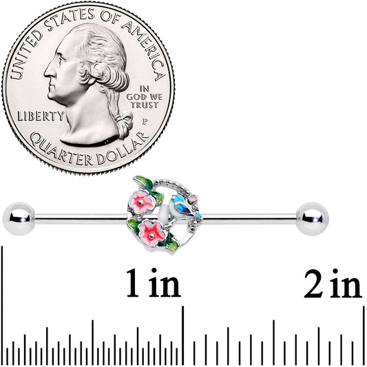 14G Little Blue Bird Pink Flowers Industrial Barbell 38mm