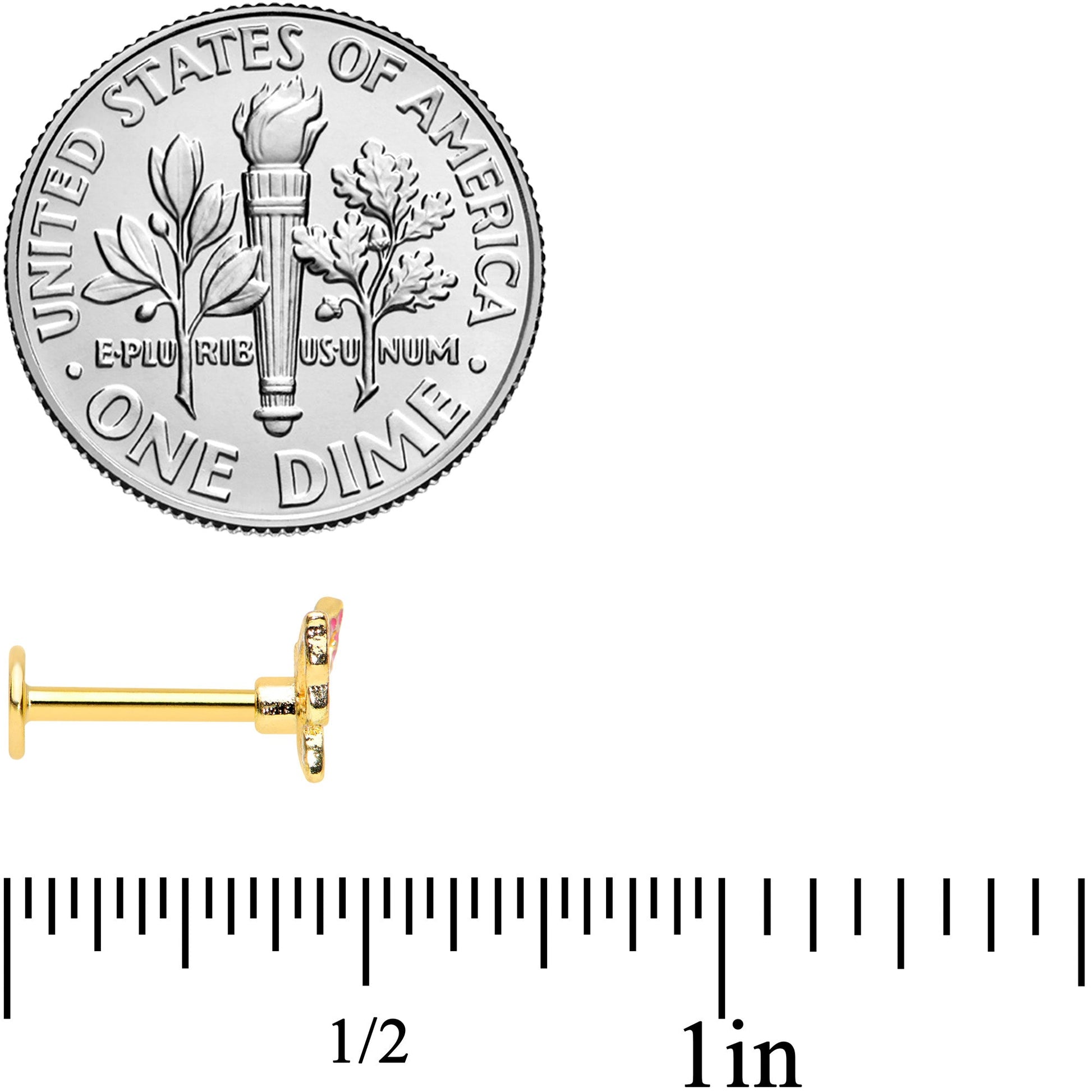 Keep it simple while keeping it stylish with this 16 gauge lip ring! It's made with an 8mm gold tone PVD over 316L surgical grade stainless steel straight barbell with a flat disc end. It features a butterfly charm, done in an openwork style. The butterfly features pink embellishments for added color and style. You can even boast this butterfly in multiple piercings including lip, monroe, tragus, helix, and some conch piercings. This cartilage piercing ring proves that simple never has to mean boring!