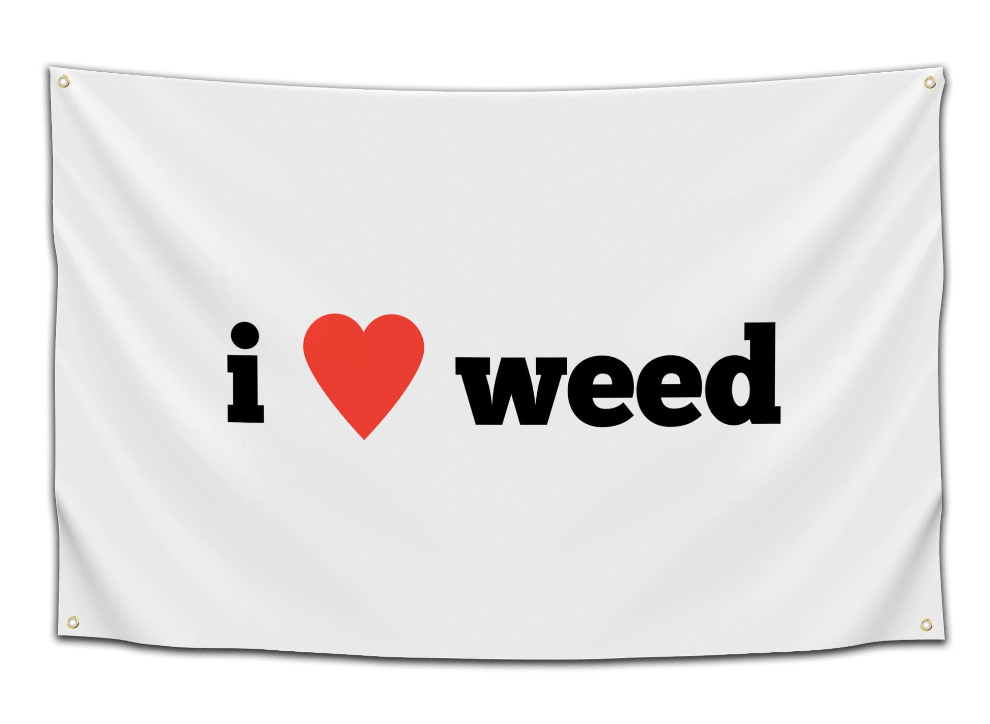 Our “i ❤️ weed” flag is the ultimate stoner room essential, ideal for chill spaces, sesh spots, and vibey dorms.