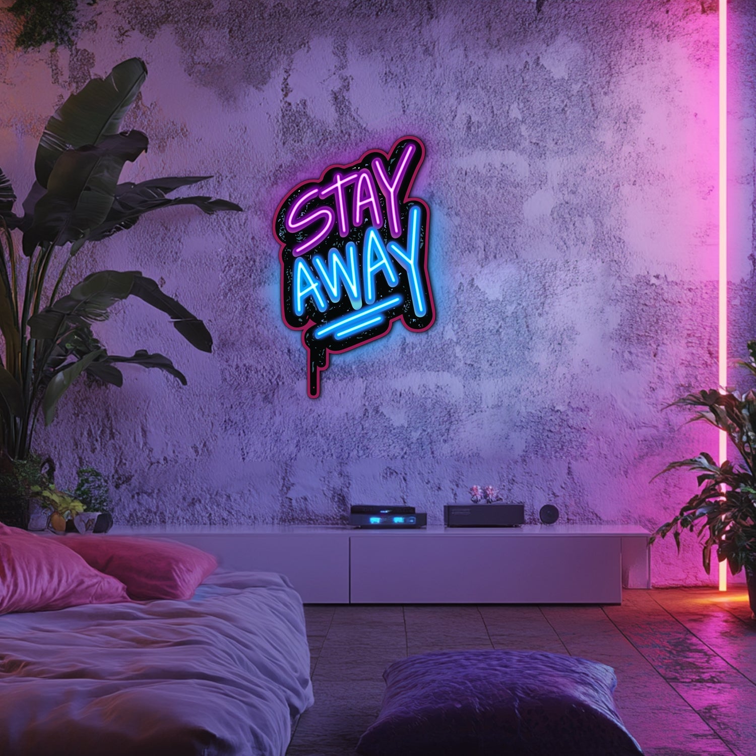 UV Printed Stay Away Neon Sign, Neon Wall Art, Neon Light Sign, Custom Neon Sign, UV Print Neon Sign, Acrylic Neon Sign, Housewarming Gifts