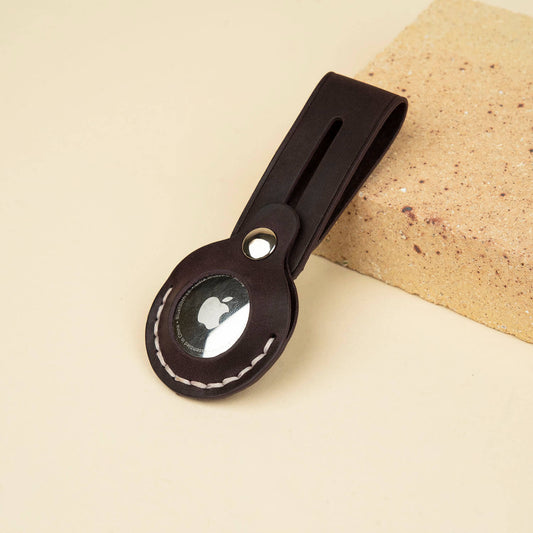 Handcrafted Leather AirTag Keychain – Sleek and Secure - Purple- Warren