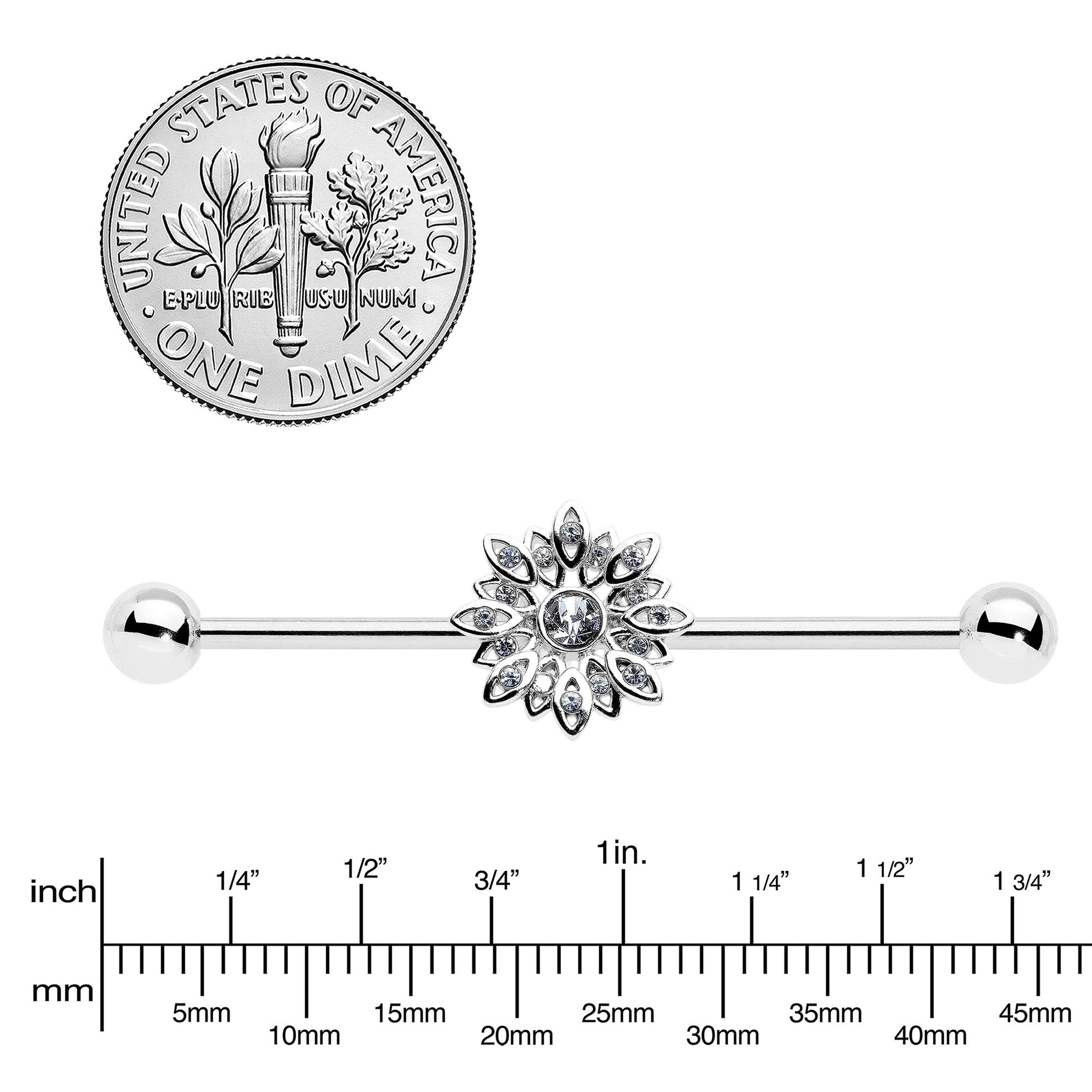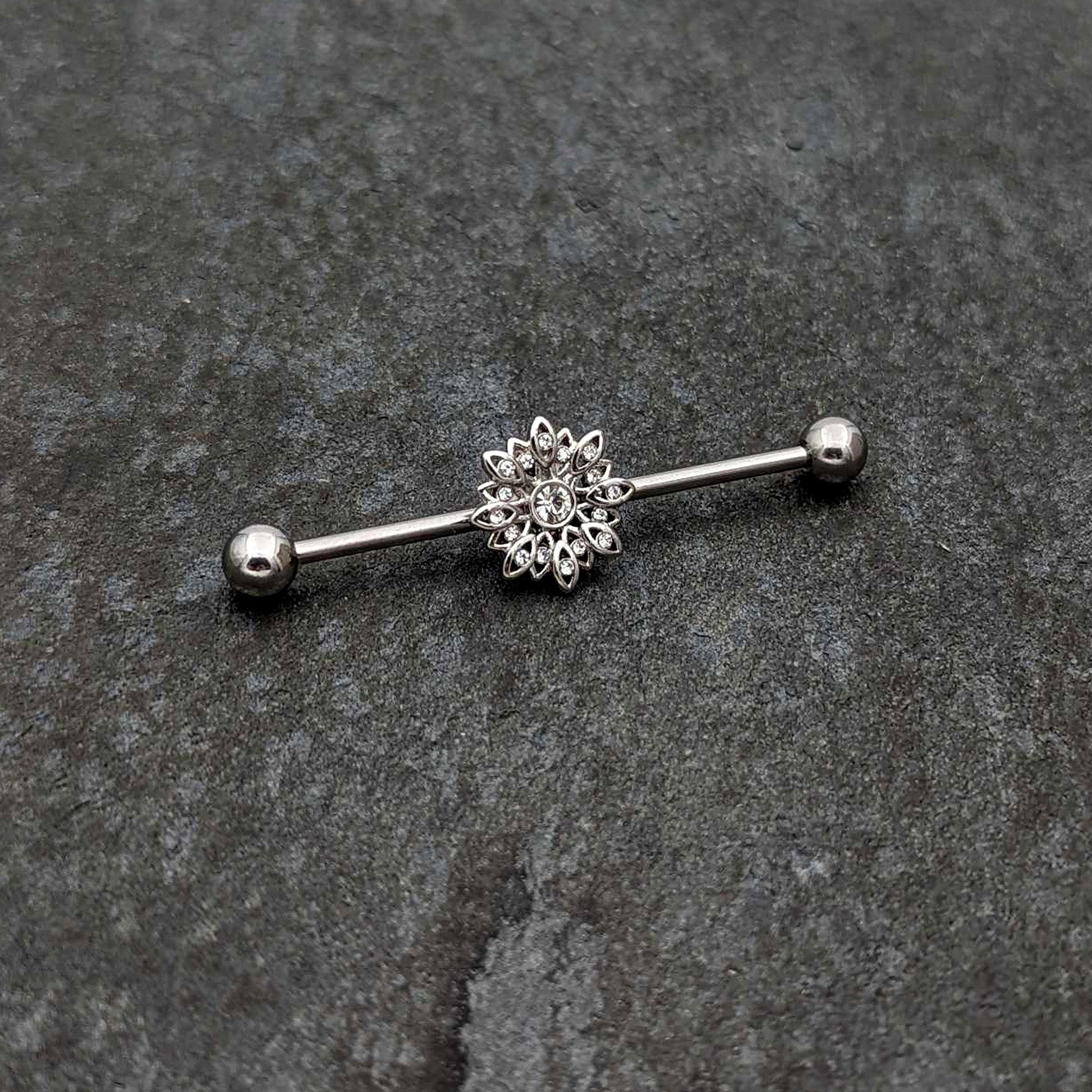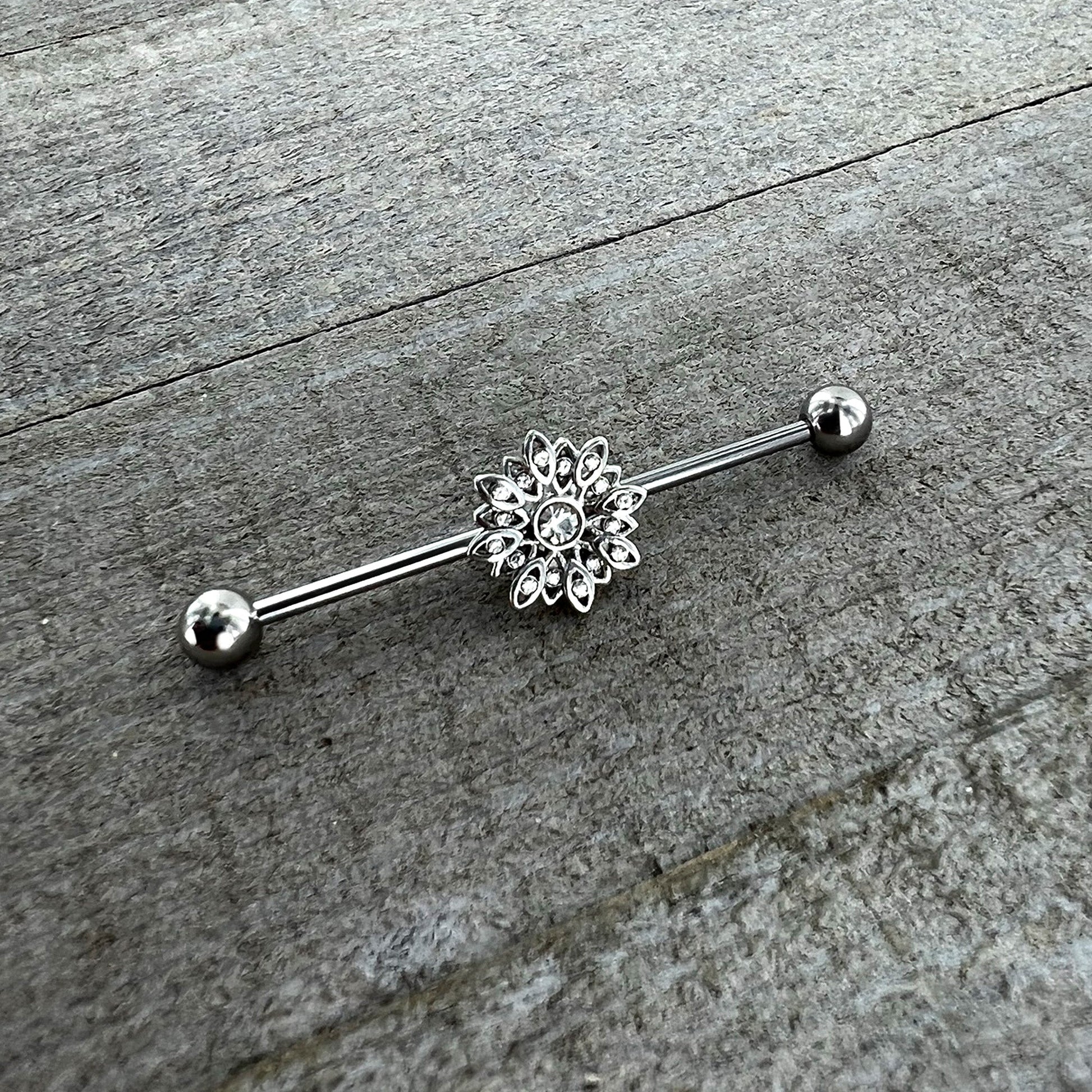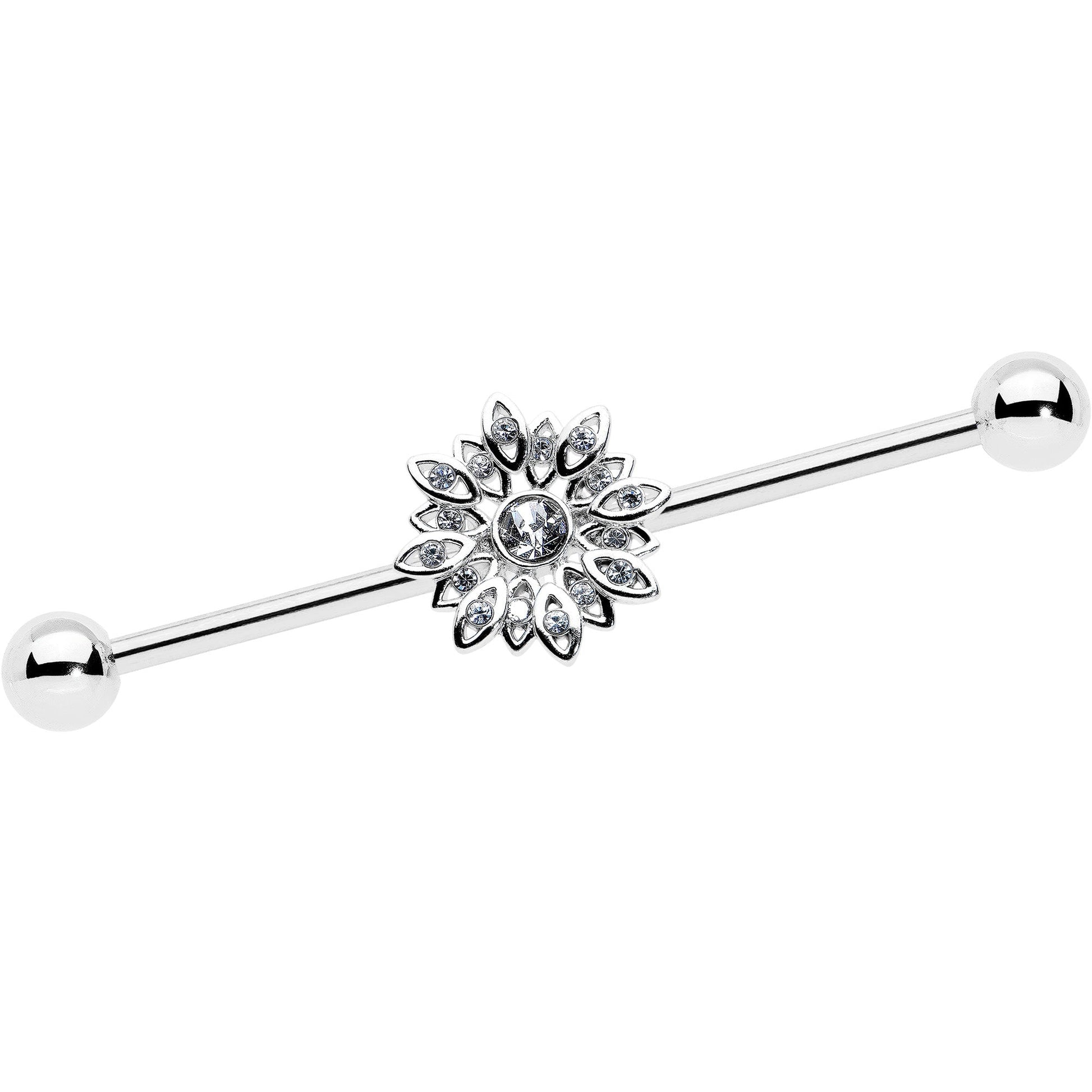 14 Gauge Clear Gem Starry Flower Industrial Barbell 38mm