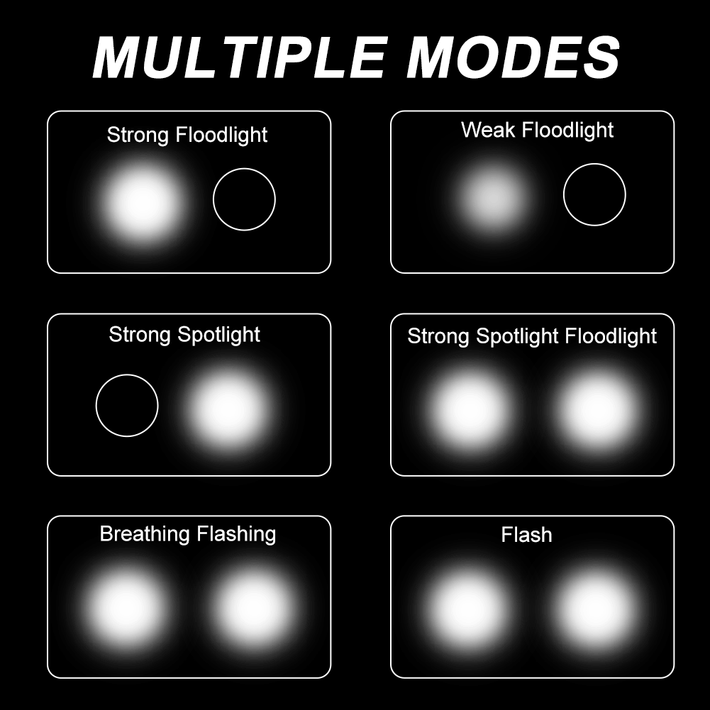 - WATERPROOF AND STRONG LIGHT: Waterproof front light withstand all adverse weather, improve your visibility and safety. 6 modes suitable for various outdoor activities. 360° rotatable bracket makes the bike light can shine any direction you want.
