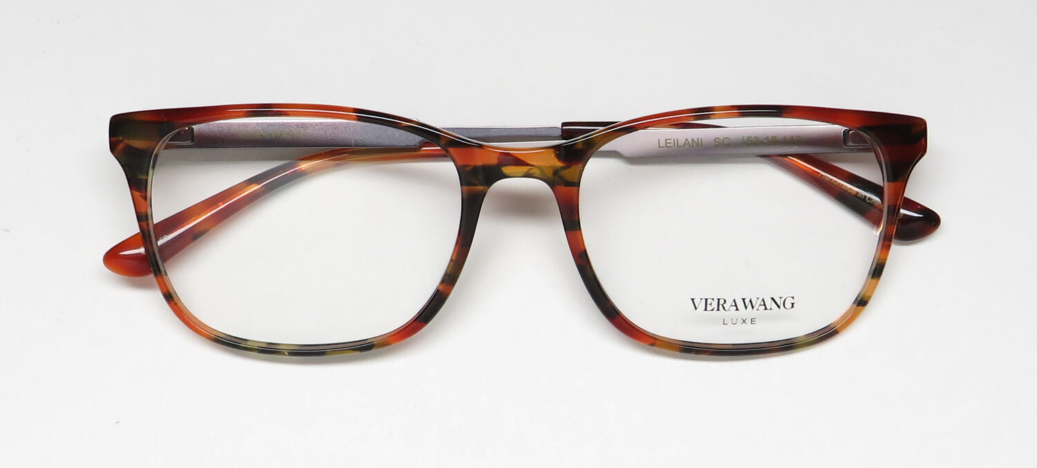 The frame is sold with demo lenses that have a logo stamped on them in ink. The frame can be fitted with real lenses at most optical stores. This frame provides comfortable fit and flatters a variety of face shapes. These eyeglasses are crafted from high quality, durable premium acetate plastic. The frame has spring hinges. Spring hinge temples prevent you from stretching the fit of your glasses and ensure that they remain intact and not become loose or out of shape. This frame is from exclusive Luxe collection. This is a flagship line of eyewear manufactured by Vera Wang from highest quality materials. Original case is included. The glasses are made in China.