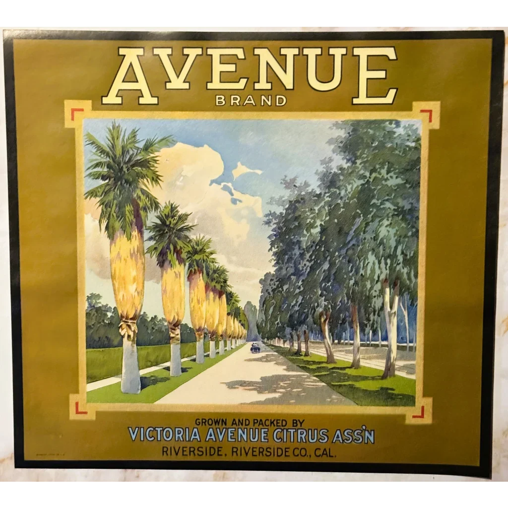 Don't miss this chance to own a piece of the Victoria Avenue Citrus Association's legacy. This rare Avenue Crate Label isn't just a collectible – it's a slice of California's citrus history that you can call your own. Grab it before it disappears like the orange groves of old Riverside!