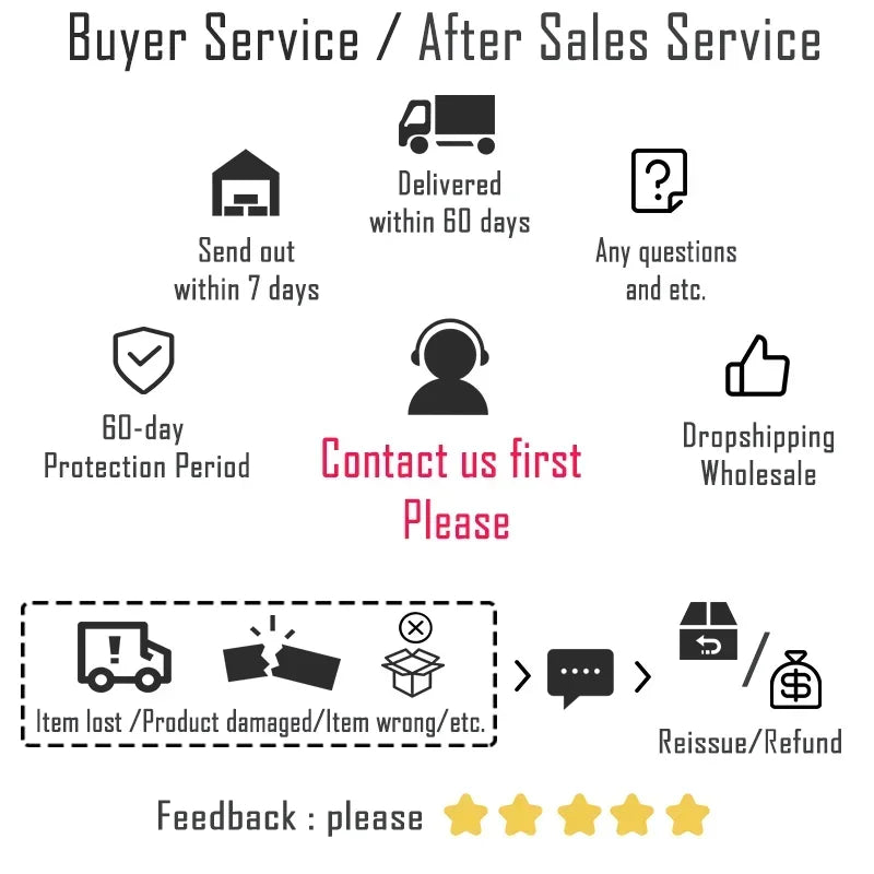 About the logistics: (1) If you do not receive it within the specified time, please contact me as soon as possible and do not open a dispute. (2) If you have any questions, please contact me as soon as possible, and do not give negative comments at will. above 2 will hurt my shop, please contact me if you have any questions, I will help you solve it