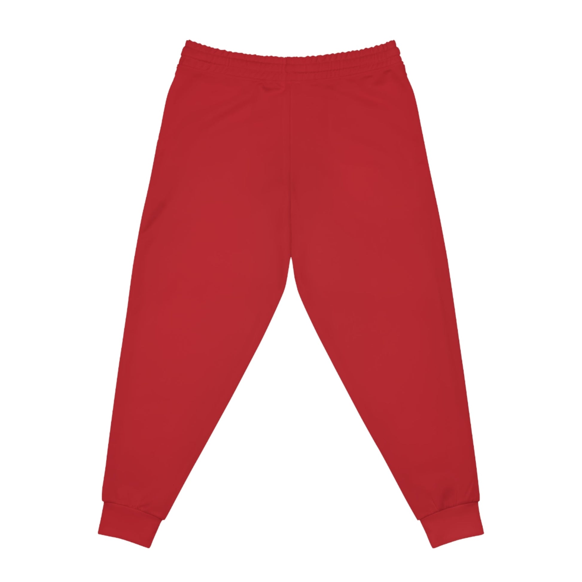 Unisex Athletic Joggers in Red, perfect for leisure or activewear. Soft and lightweight material with convenient side-seam construction and pockets. Adjust the waistband with drawstrings for the perfect fit. All over print design for a bold look.