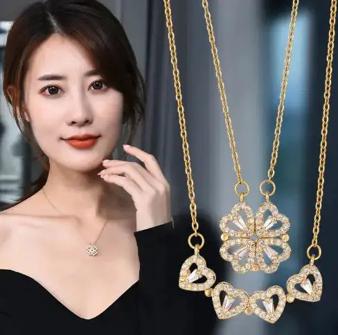 Rose Gift Box with Four-Leaf Grass and Heart Necklaces
