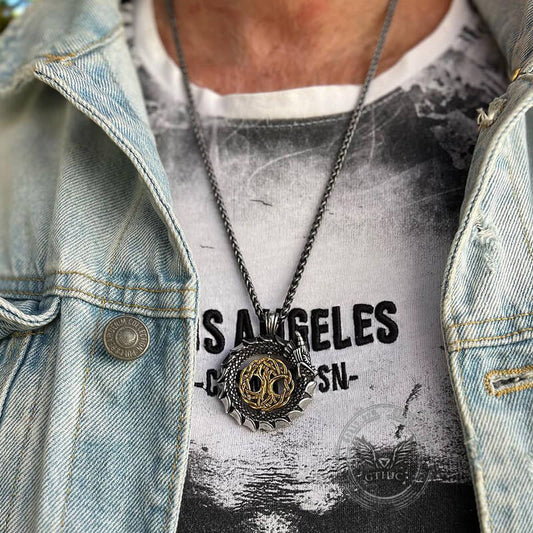 Ouroboros Tree of Life Stainless Steel Spinner Pendant