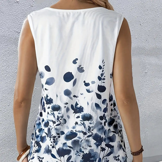 Ladies' Fashionable Sleeveless Vest With Printed Plant Vacation Style Seaside Vest