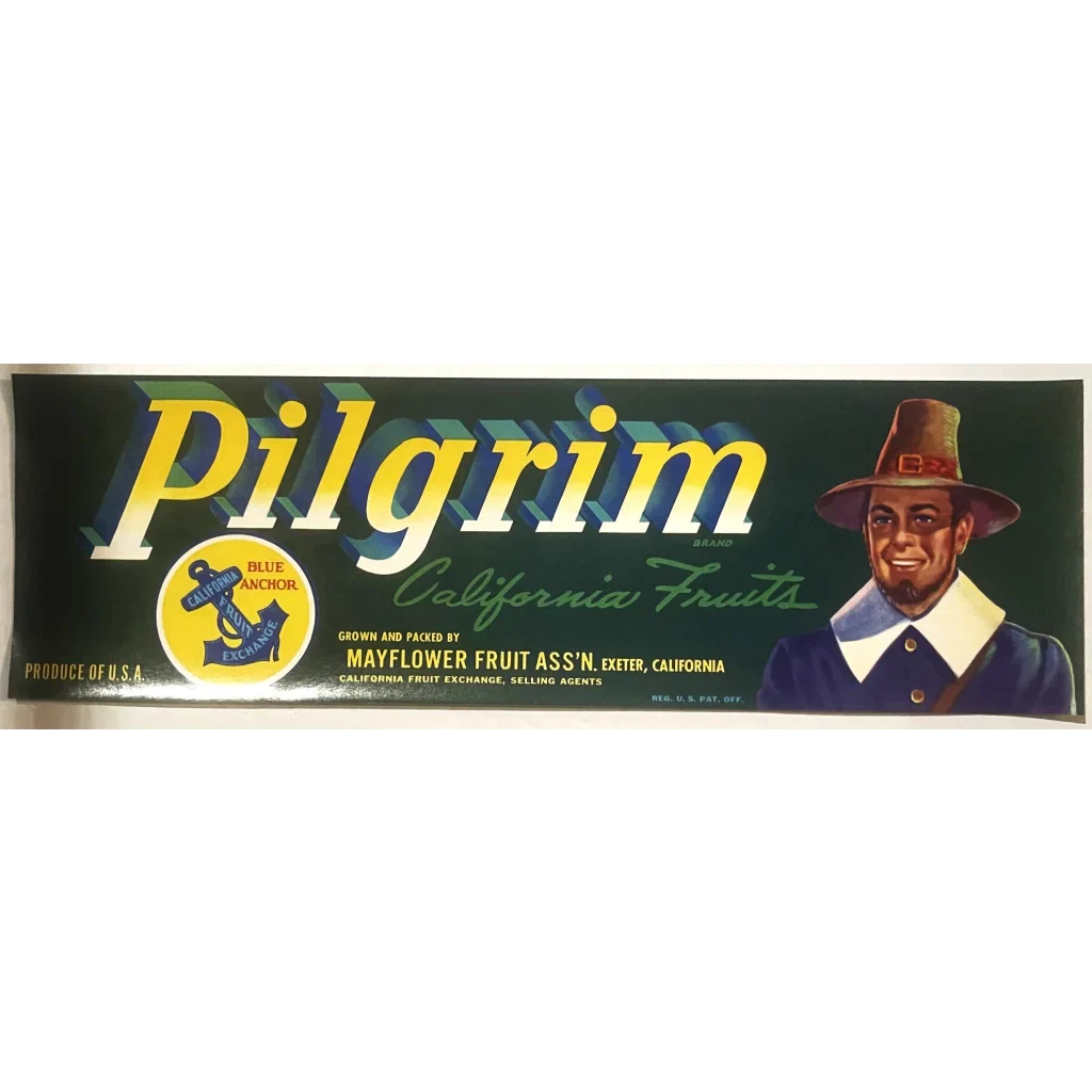 Behold! This extraordinary antique Vintage 1940s Pilgrim Crate Label is a true masterpiece, meticulously crafted by the renowned Mayflower Fruit Association of Exeter, California. This captivating piece is not merely a label; it's a mesmerizing fusion of art and history, a cultural gem that will transport you back to a bygone era of American agriculture and design.
