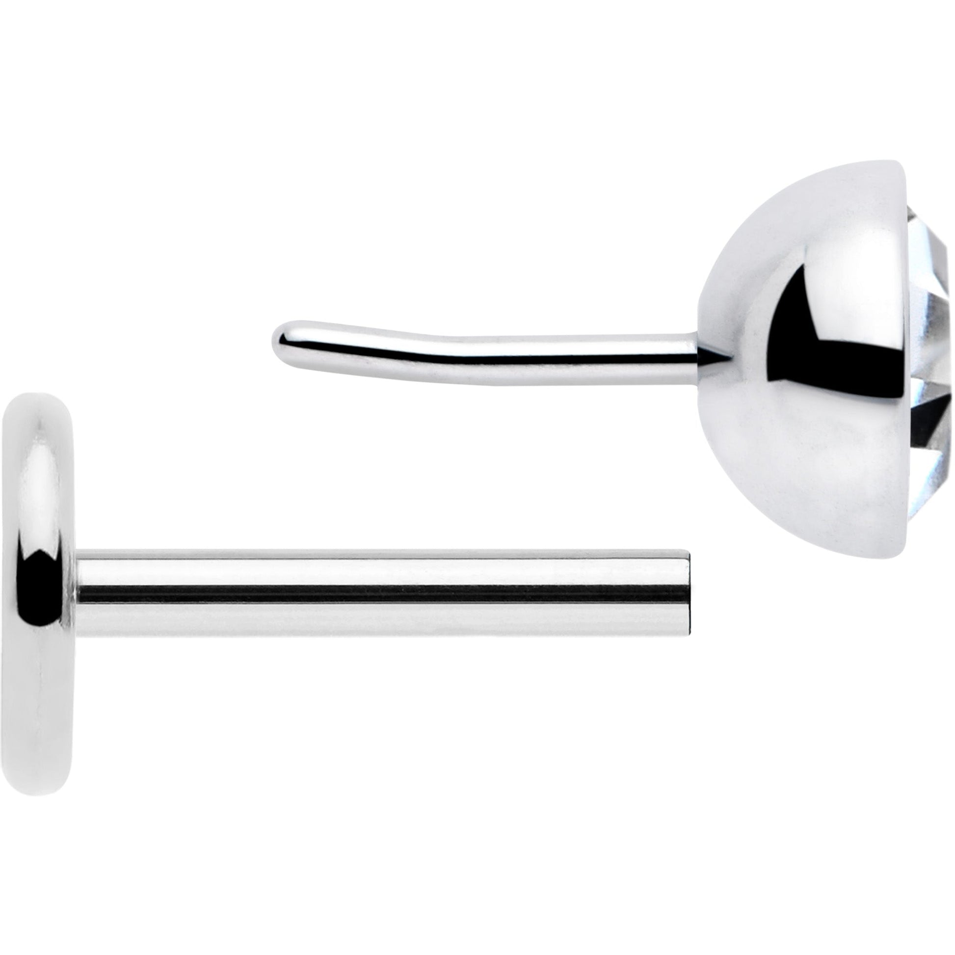 Check out these super comfortable 20 gauge flat back earrings for 24/7 wear.. No need to take these earrings out; keep them in for sleeping and naps. They're made with 6mm durable 316L surgical grade stainless steel straight posts with a flat disc end. They feature 4mm round cubic zirconia gems for a classic look of understated style. You'll wonder how you lived without this simply elegant ear piercing jewelry. Sold as a set of two.
