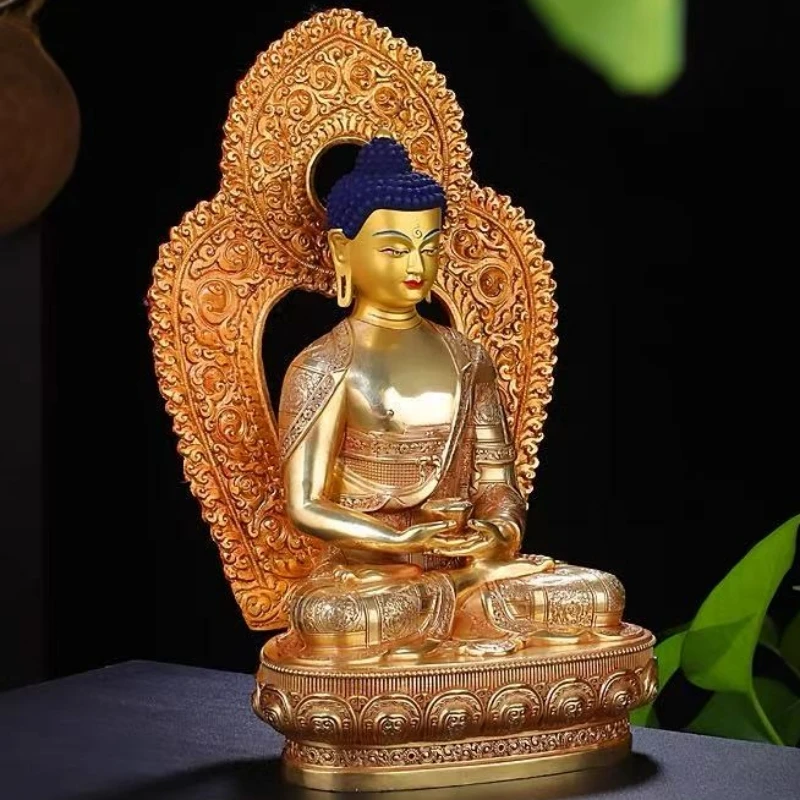 Amitabha Buddha Statue Buddhist Item,Backlight Brass Exquisite Nepal Tantric Altars Home Decorative Amitabha Buddha Figurine