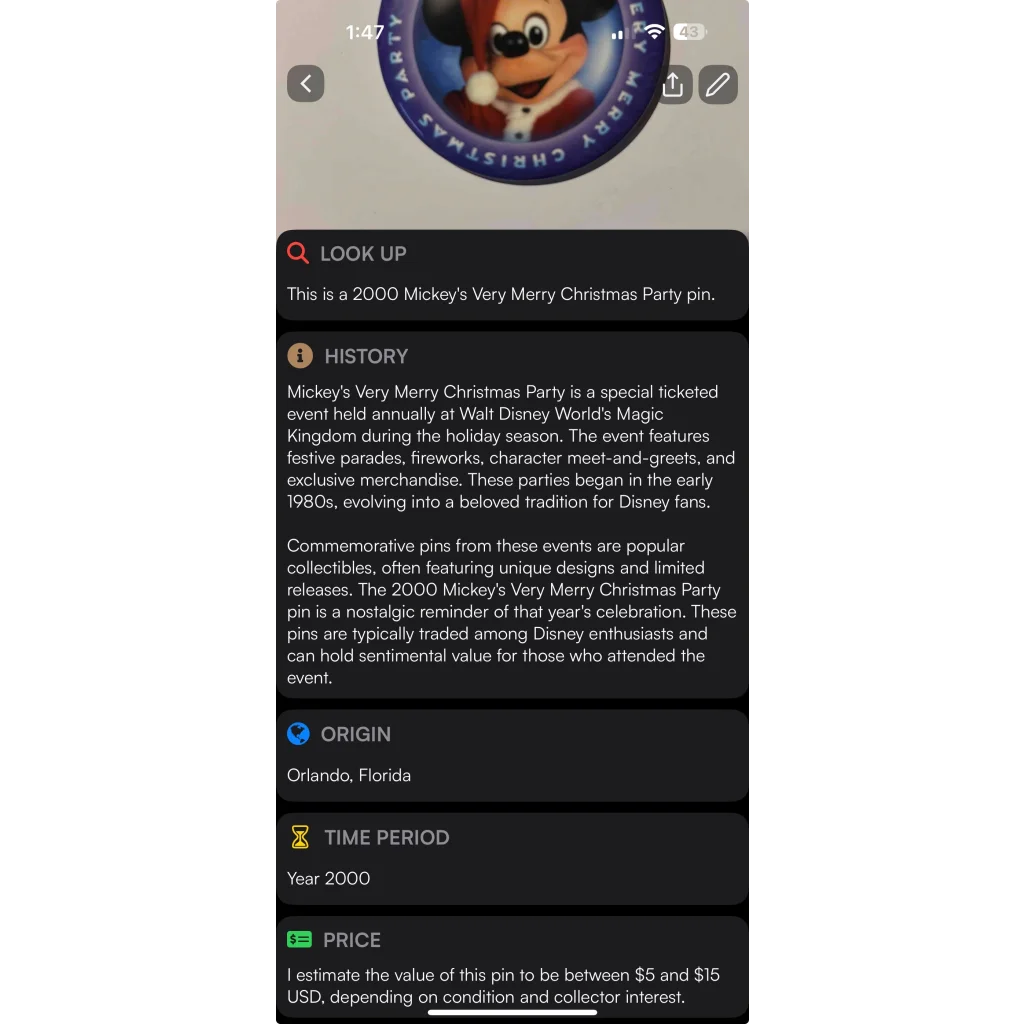 But wait, there's more! Thanks to the wonders of AI, we're throwing in a free Curio AI report on this item. This isn't just any old report – it's your golden ticket to understanding the true investment potential of this Mickey Mouse masterpiece. We're talking about a unique piece of Disney memorabilia that's only going to skyrocket in value. Don't believe us? Check out the pictures and see for yourself!