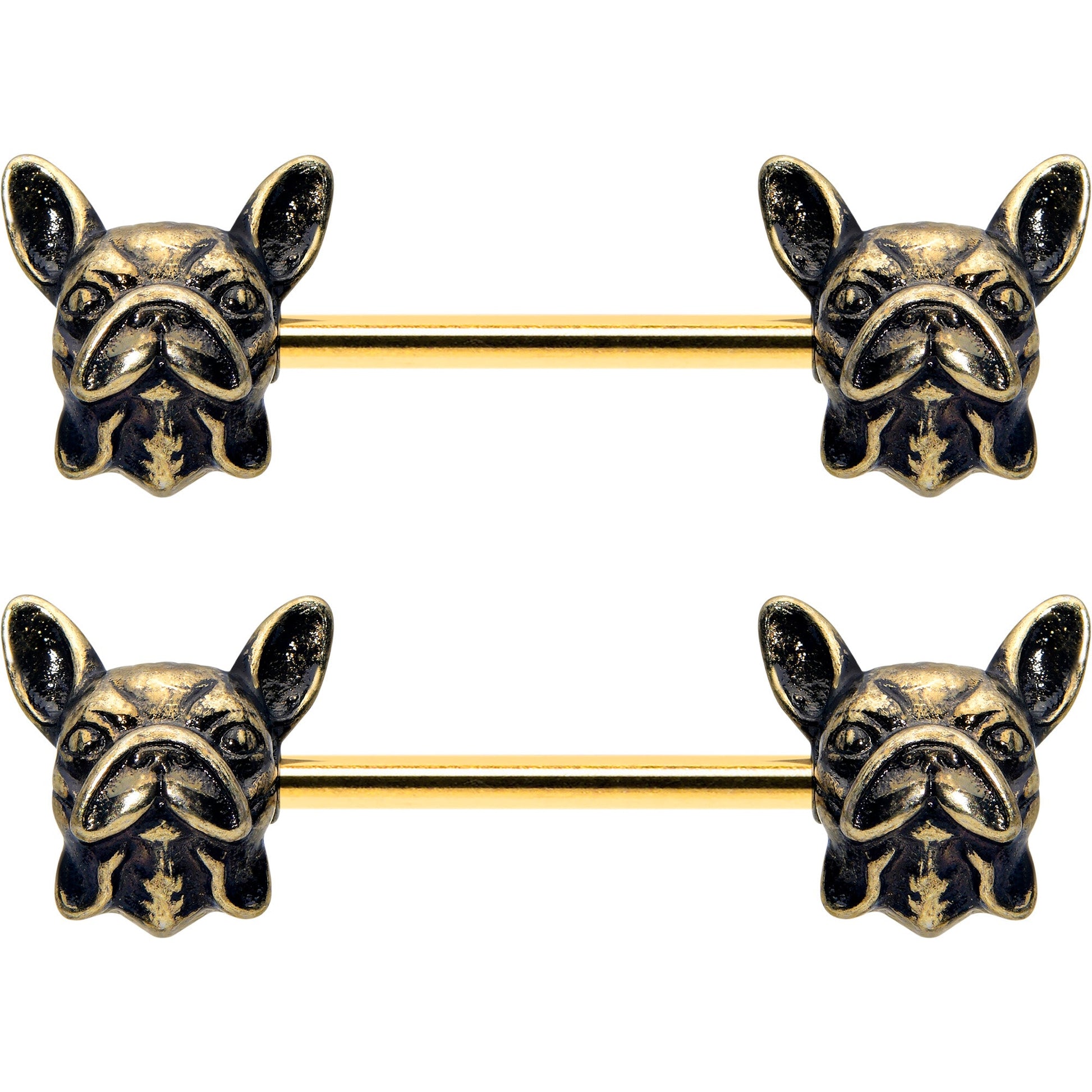 14 Gauge 5/8 Gold Tone Anodized French Bulldog Barbell Nipple Ring Set