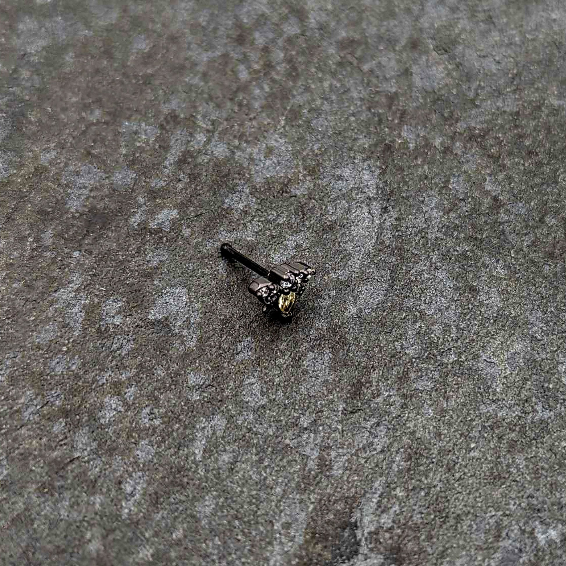 20G 1/4 Clear Yellow Gem Black Butterfly Nose Bone