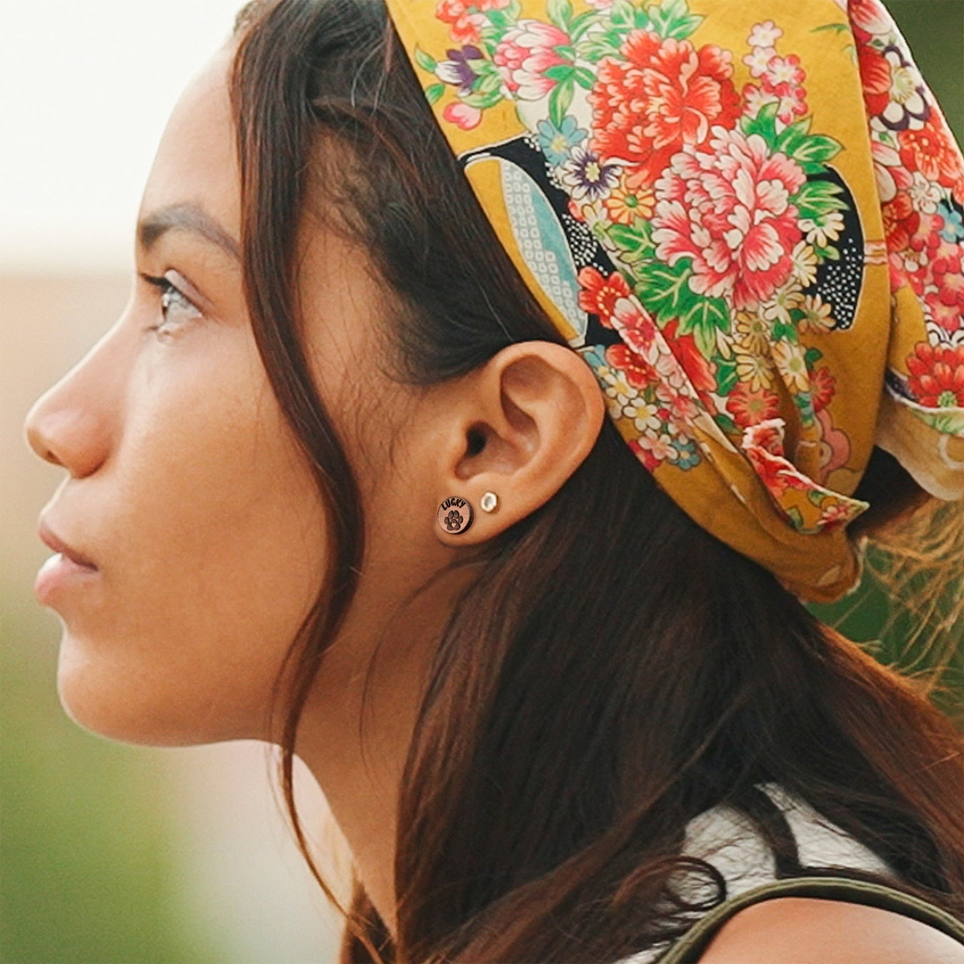 Custom Earrings Wood Round Paw Print Personalized Stud Earrings