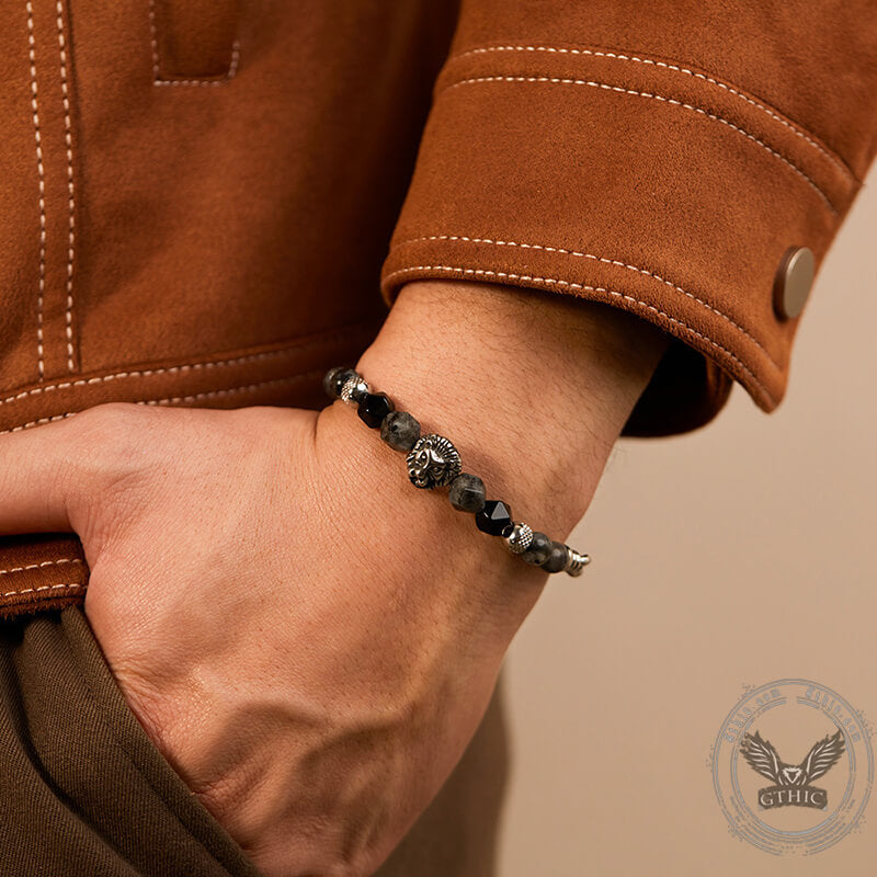 Punk Lion Stainless Steel Stone Beaded Bracelet