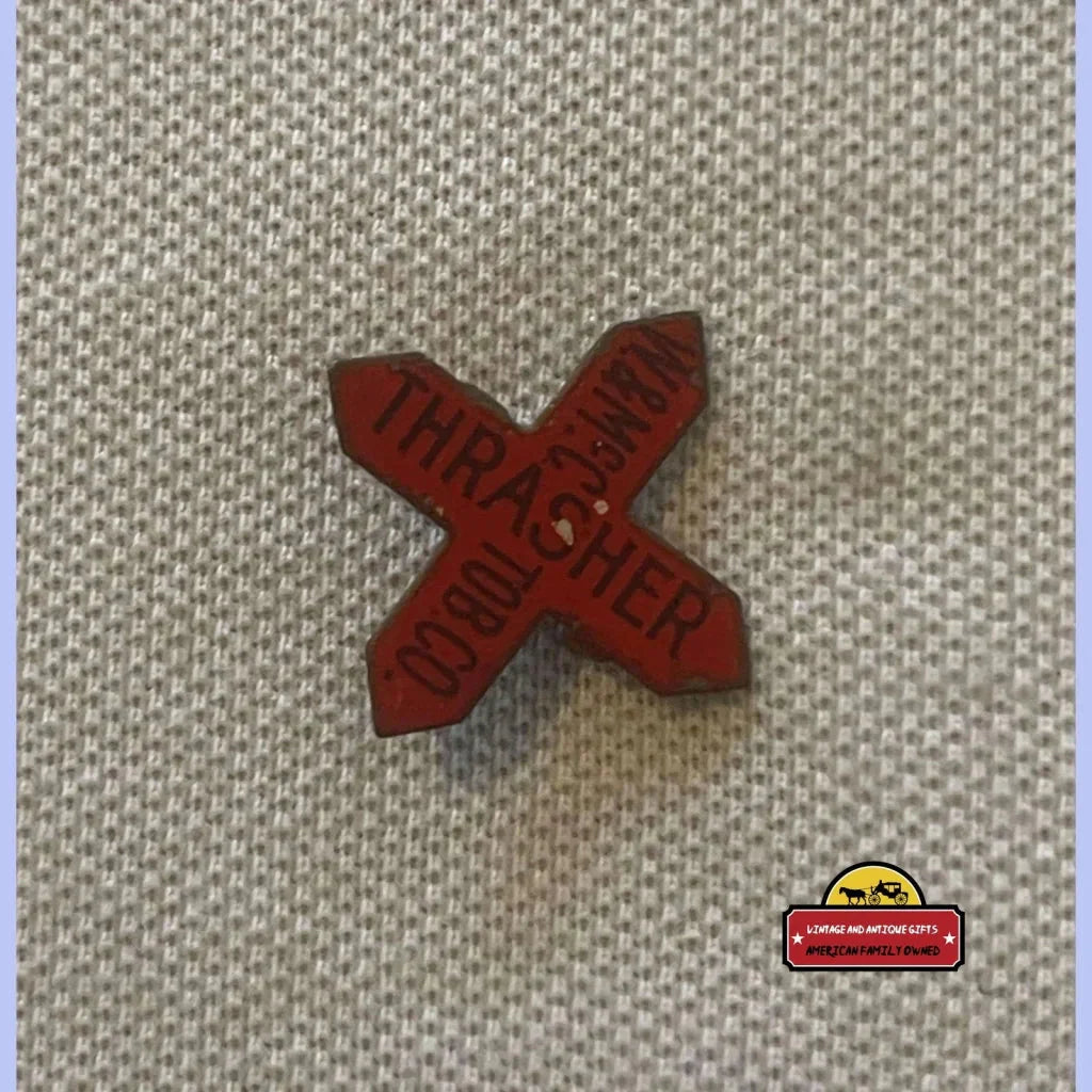 Don't let this unparalleled opportunity slip through your fingers! This Thrasher Tin Tobacco Tag is more than just a collectible – it's a conversation starter, a piece of living history, and a testament to your discerning taste. Whether you're a seasoned collector of tobacco memorabilia or just beginning your journey into the fascinating world of antique treasures, this tag deserves pride of place in your collection. Seize this chance to own a piece of Americana that will continue to captivate and inspire for generations to come!
