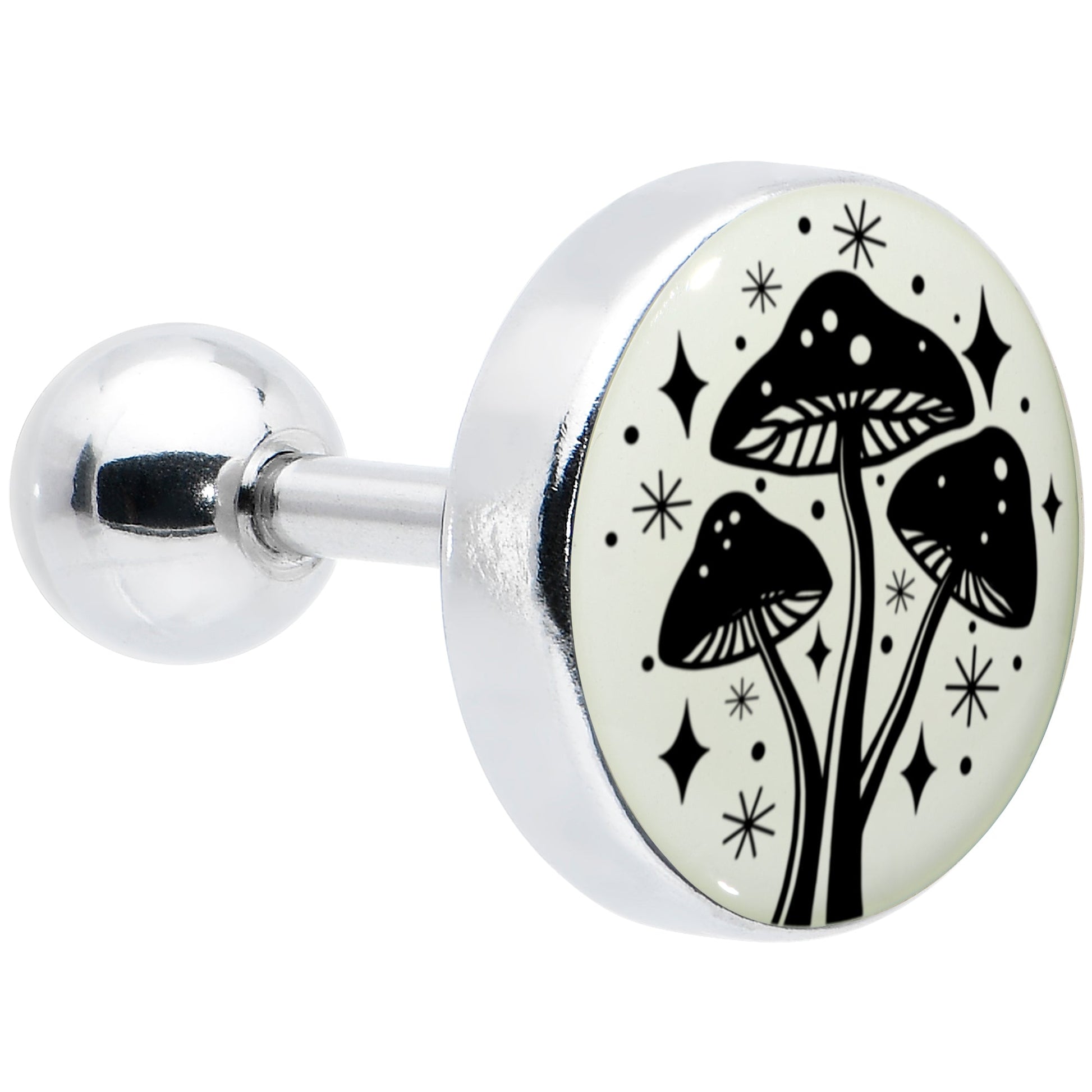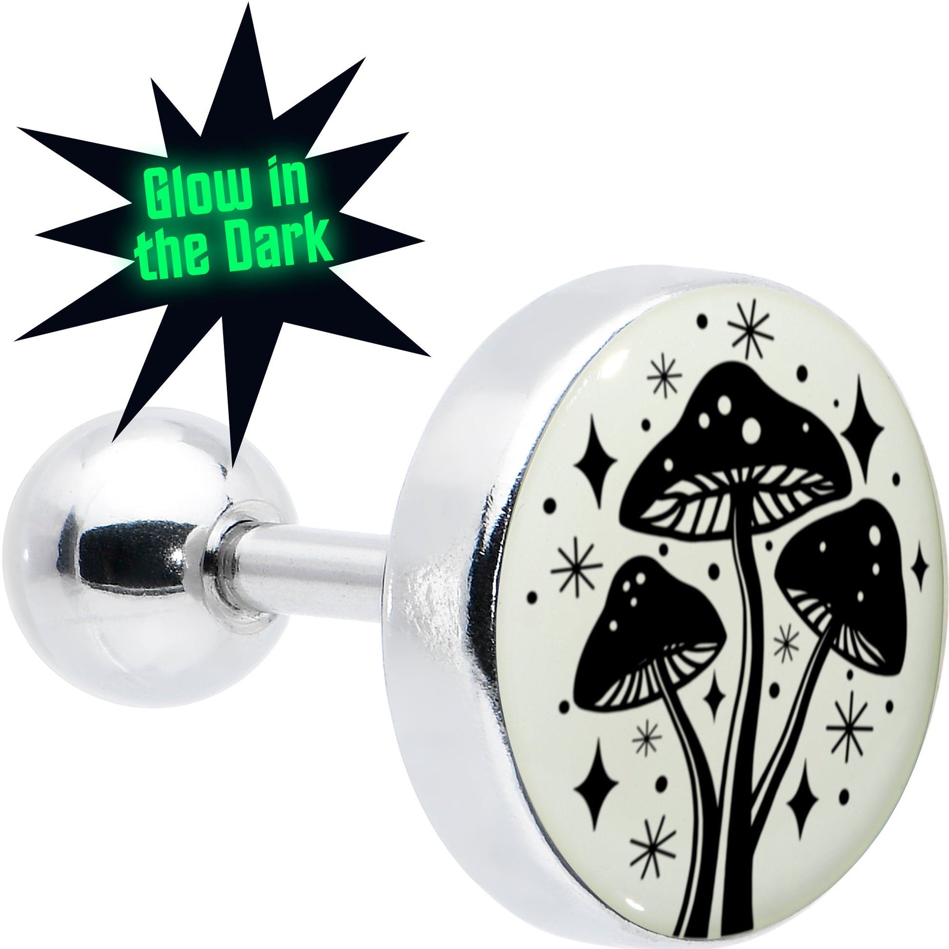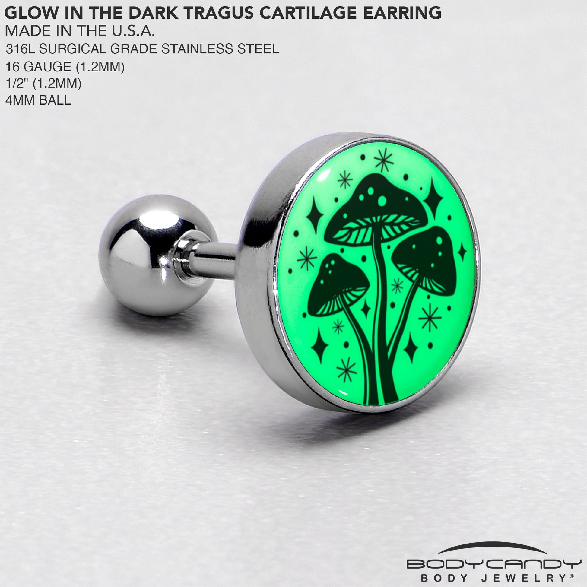 Hypoallergenic jewelry for sensitive skin.16 Gauge 1/4 Glow in the Dark Mystic Mushroom Tragus Cartilage Earring