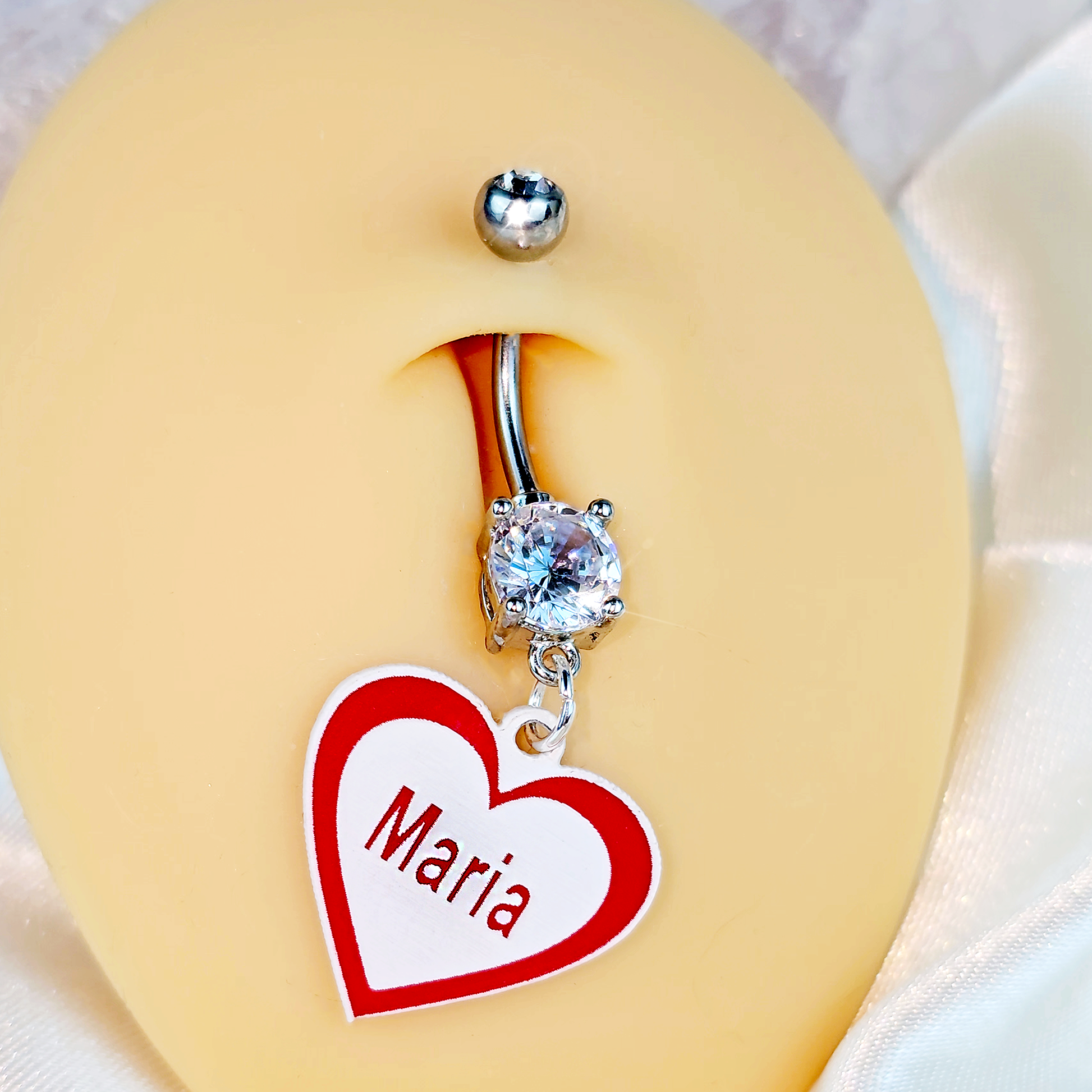 Custom Double Gem Red White Valentines Day Heart Personalized Dangle Belly Ring