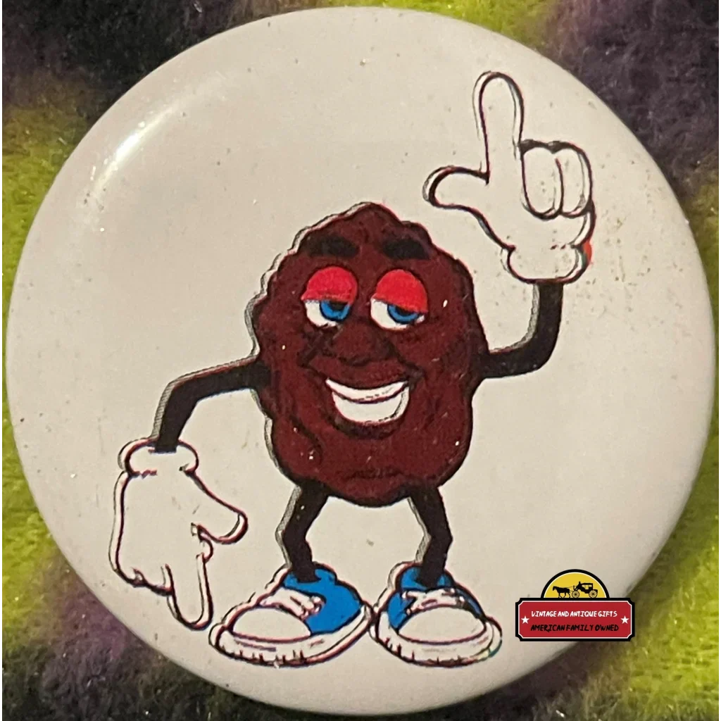 Prepare for a tidal wave of memories as you lay eyes on this pointing California raisin tin pin! You'll find yourself humming "I Heard It Through the Grapevine" and frantically searching YouTube for those unforgettable California Raisin commercials. But don't just take our word for it - even the prestigious Smithsonian Institution recognizes the historical significance of California Raisin collectibles. Imagine owning a piece of pop culture history that's museum-worthy!