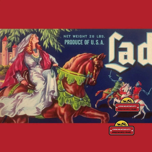 Rare 1950s Lady Rowena Antique Vintage Crate Label with Knight Duel