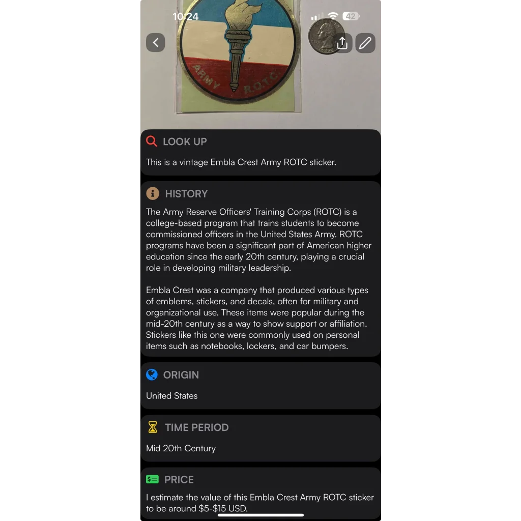 But wait, there's more! Thanks to the wonders of AI, we're throwing in a free provenance report. It's like having a personal historian right at your fingertips! And let me tell you, the value of these rare vintage 1960s army gems is skyrocketing faster than a cadet up the ranks. Don't just take my word for it – check out the pictures for all the juicy details.