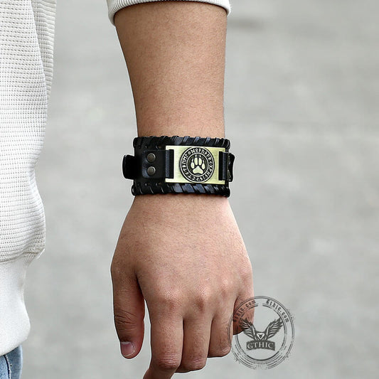 Nordic Wolf Paw Runes Leather Viking Bracelet