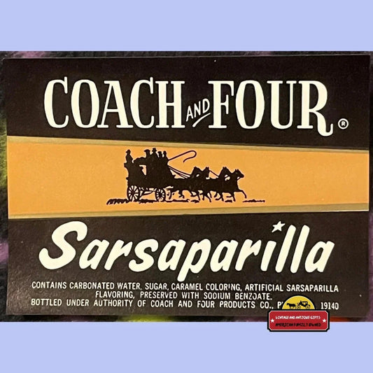 Vintage Coach and Four Sarsaparilla Soda Label from 1960s Philly
