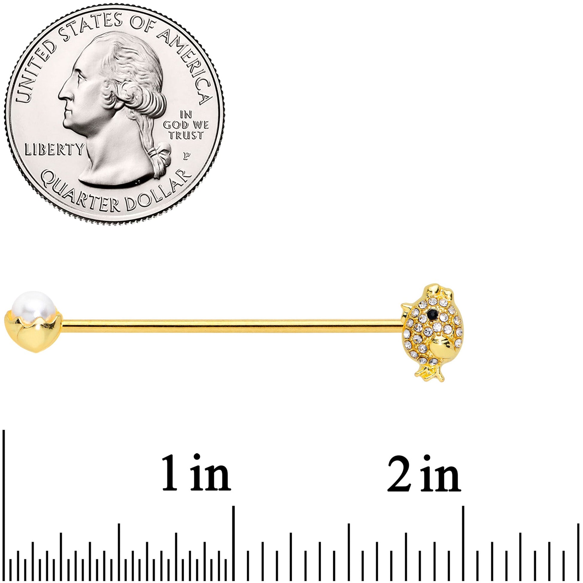 14 Gauge Clear Gem Gold Tone Egg Chick Industrial Barbell 38mm