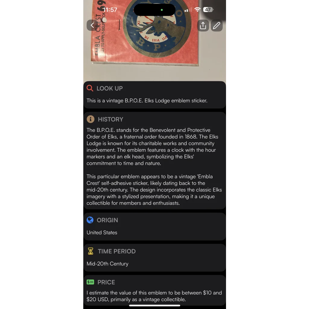 Don't let this chance slip through your fingers! This vintage 1960s Benevolent and Protective Order of Elks Decal isn't just a collectible – it's a conversation starter, a piece of history, and a stunning addition to any room. Whether you're a seasoned collector or just someone who appreciates the charm of bygone eras, this Embla Crest decal is calling your name. Grab it now and add a touch of vintage cool to your life!