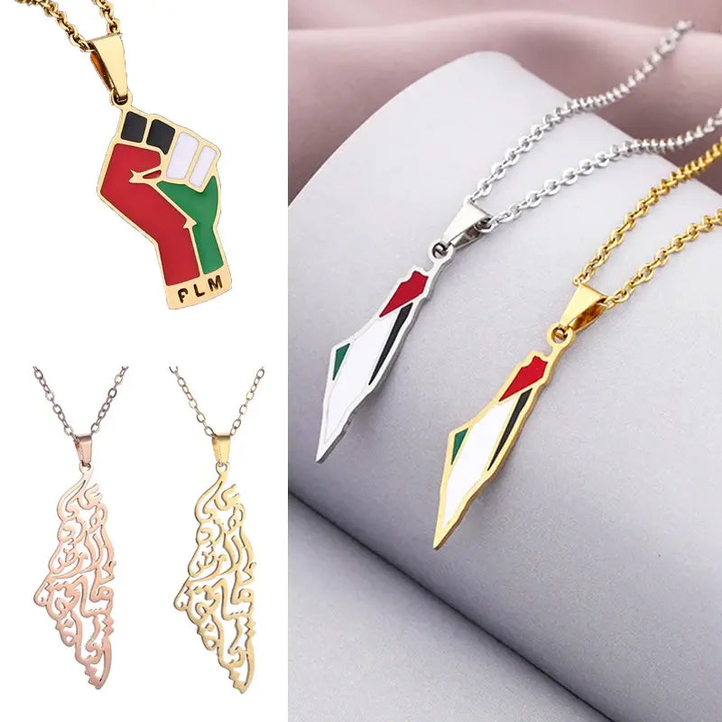 Show your solidarity with these stainless steel Palestine pendant chain necklaces, perfect for expressing your commitment to a cause close to your heart.